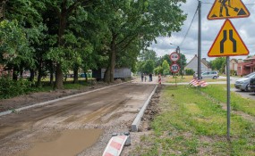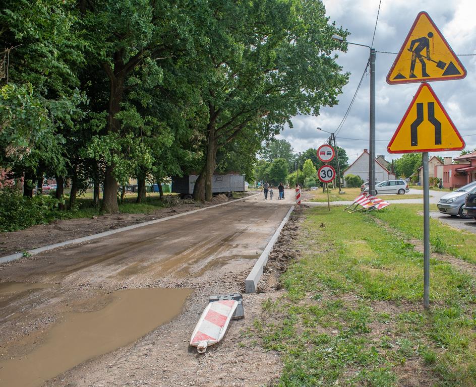 Trwają prace związane z przebudową drogi gminnej w m. Skibno. Wykonawca robót wyłoniony w drodze przetargu – Przedsiębiorstwo Robót Inżynieryjnych i Budowlanych „INFRABUD” Spółka z o.o. 75-033 Koszalin ul. Zwycięstwa 16, w części ustawiło nowe krawężniki i zwozi materiały do wykonania drogi.
