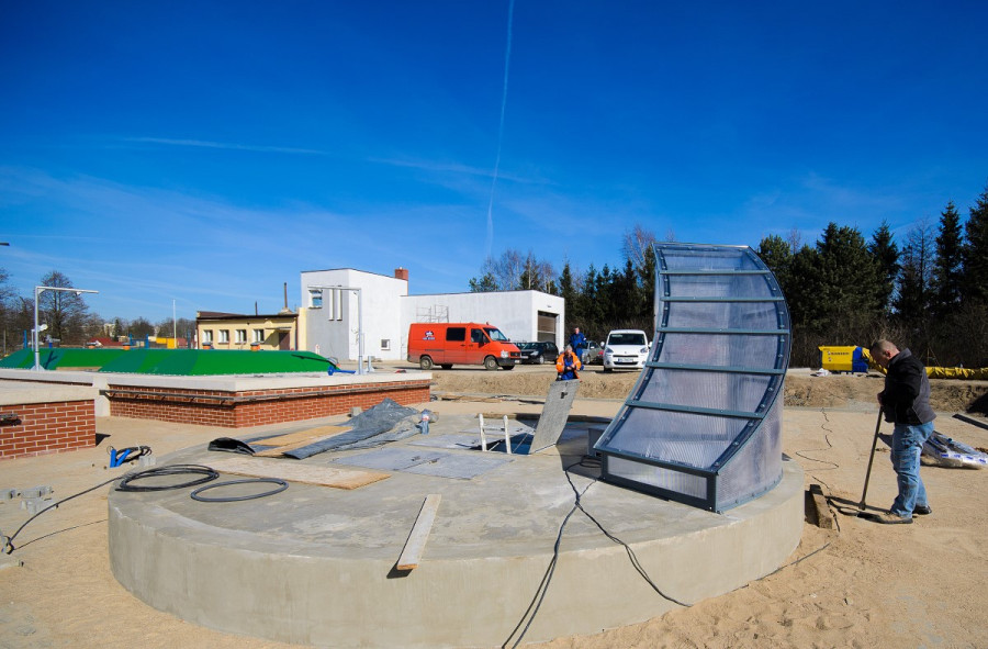 Na zdjęciach: prace prowadzone na podczyszczalni ścieków i przepompowni centralnej w Sianowie.