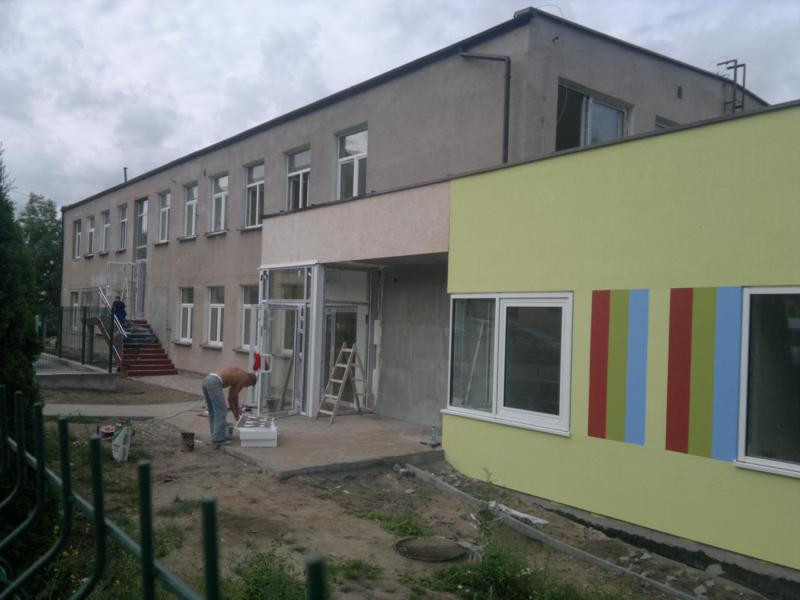 Prace przy rozbudowie Przedszkola Gminnego w Sianowie.