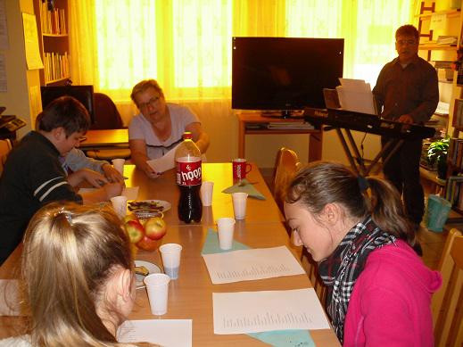 24 kwietnia 2015 r. w Filii Bibliotecznej w Węgorzewie odbyła się nietypowa, śpiewana lekcja biblioteczna, gdzie posługiwaliśmy się poezją śpiewaną ( pojemny gatunek muzyczny, w którym utwory składają się z wiersza). Śpiewaliśmy m.in. Świteziankę Adama Mickiewicza, Odę do radości, W malinowym chruśniaku oraz inne piosenki, przy akompaniamencie pana Adama Maciejewskiego.