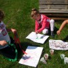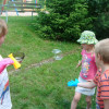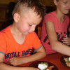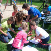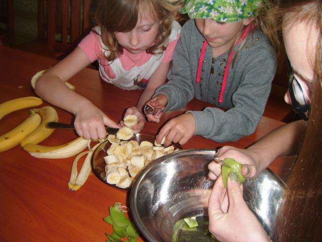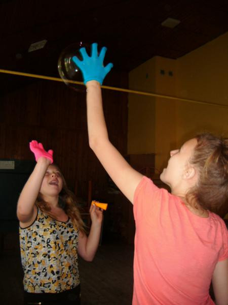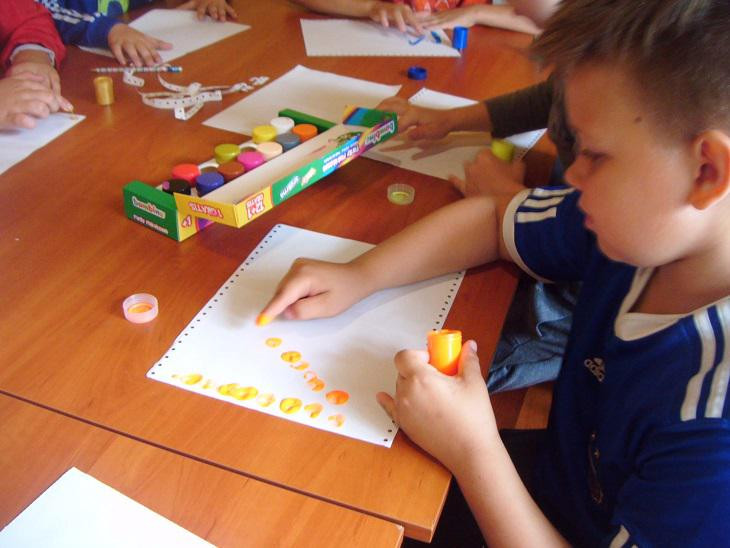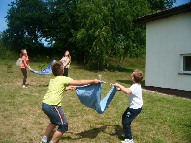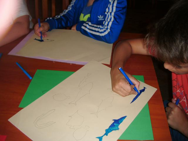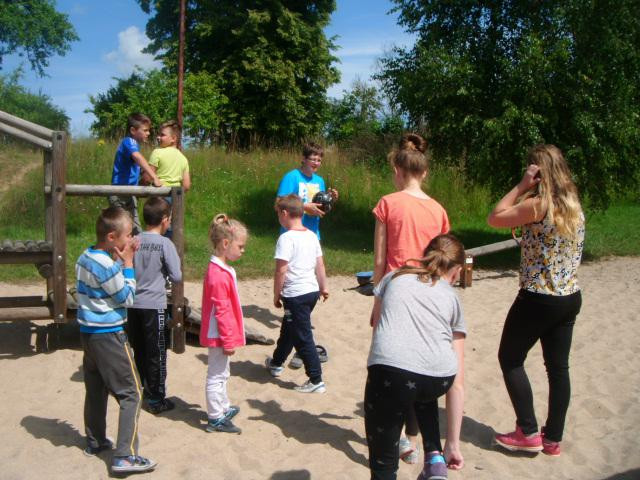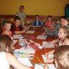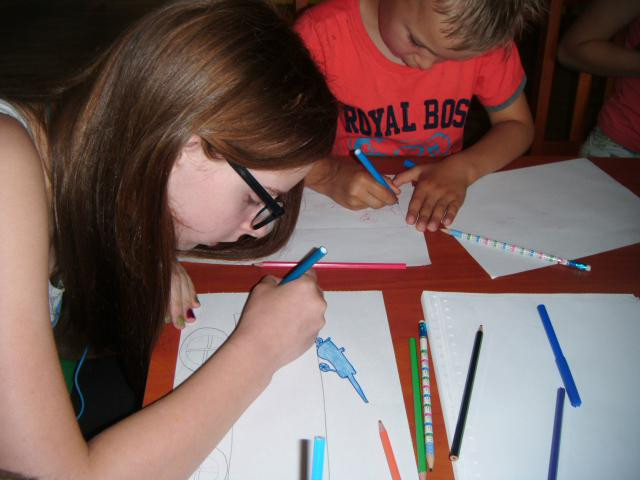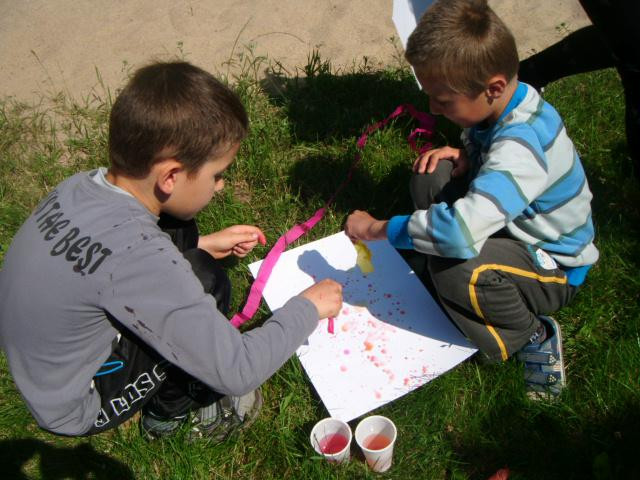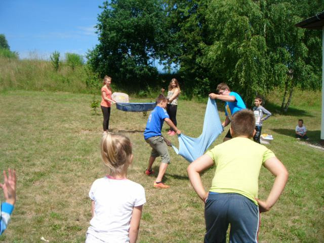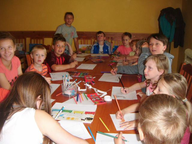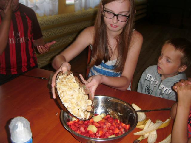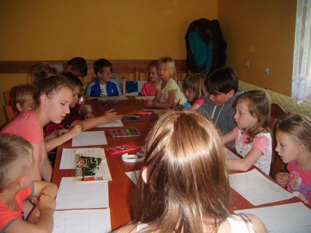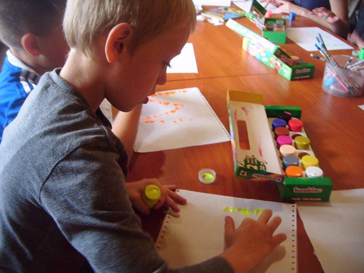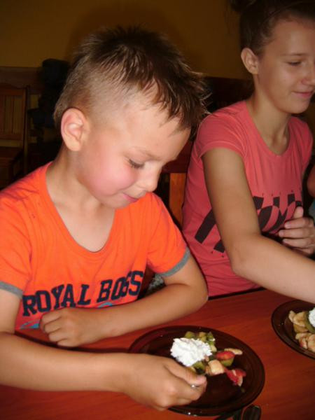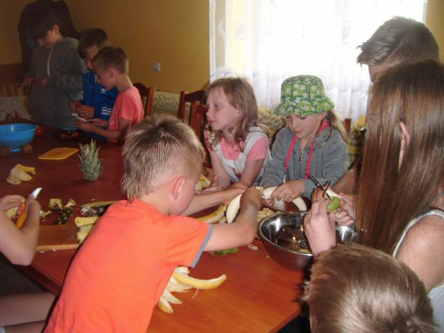 Minął trzeci tydzień wakacyjnych zajęć organizowanych w filii bibliotecznej w Sierakowie. Na zajęciach kulinarnych było smacznie i zdrowo. Dzieci własnoręcznie przygotowały pyszną, witaminową sałatkę owocową. Natomiast na warsztatach plastycznych uczestnicy wykonywali wagony do „Lokomotywy” J. Tuwima oraz papierowe akwarium i pocztówki. Przy użyciu bibuły powstały chlapane rysunki a za pomocą palców prace ze swoim imieniem Pogoda dopisuje, więc część zajęć dzieci spędzają na dworze grając w piłkę i siatkówkę balonową oraz bawiąc się w ganianego-chowanego.