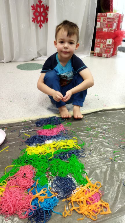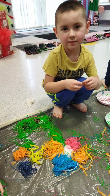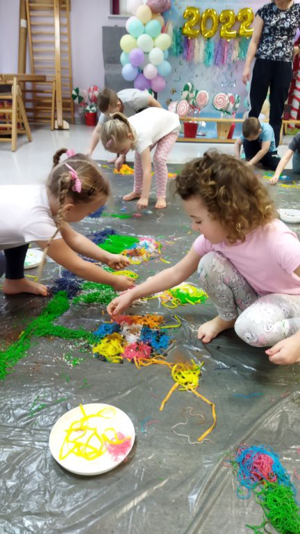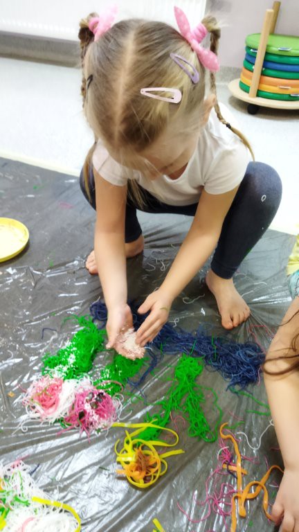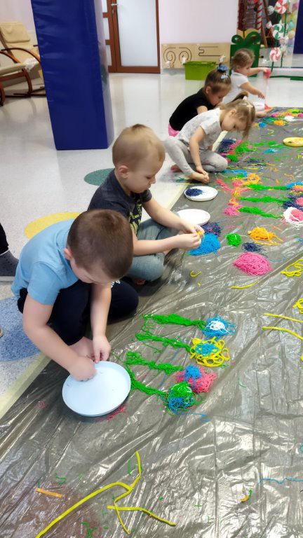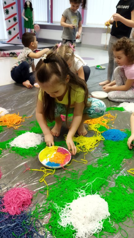 24 stycznia dzieci z grupy „ Motylki” pobudzały swoją kreatywność, zmysły: wzrok, słuch, węch , dotyk na zajęciach sensoplastycznych.