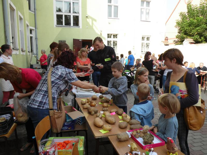 Przez całą imprezę uczestnicy imprezy mogli skosztować potraw z ziemniaka: pieczonych ziemniaków na grillu, frytek i placków ziemniaczanych przygotowanych przez pracowników szkoły: Alinę Balcerowicz, Anię Miler, Barbarę Szapiaczan, Małgorzatę Arabasz i Tadeusza Sawickiego oraz pana Wiesława Kroka.