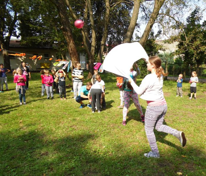 • W ogródku dla chętnych pan Robert Kowalczyk zorganizował Siatkówkę balonową i wojnę na balony.