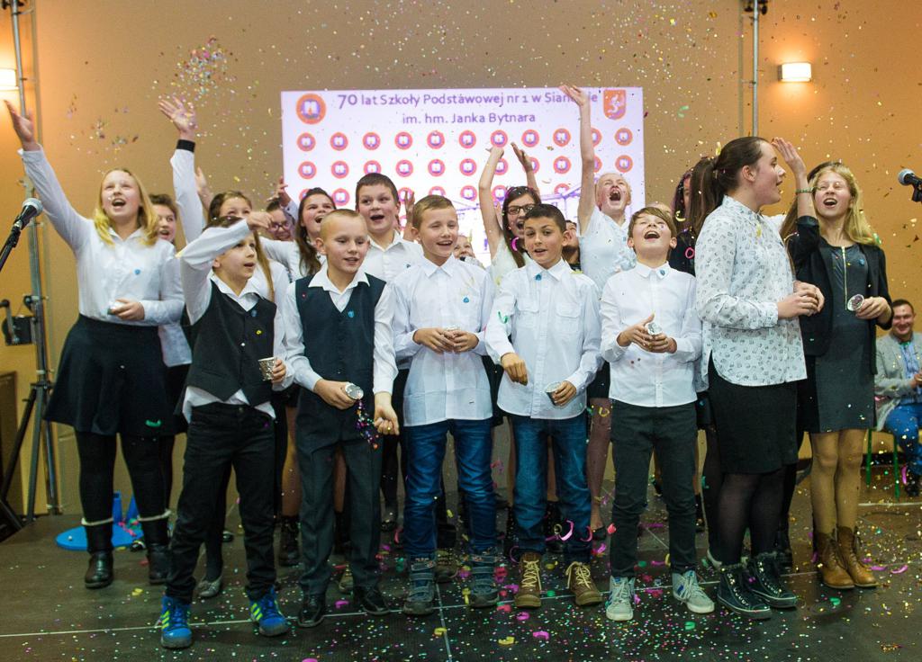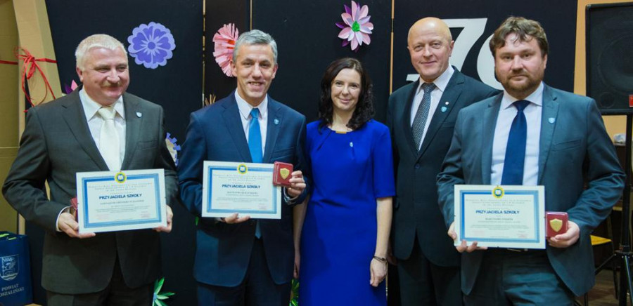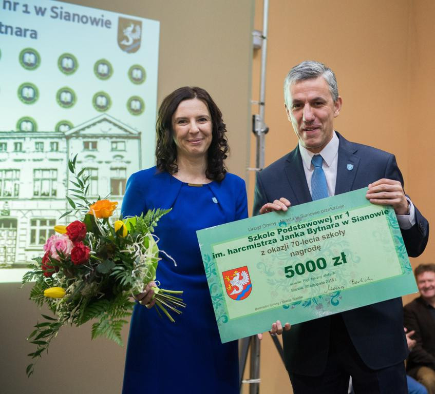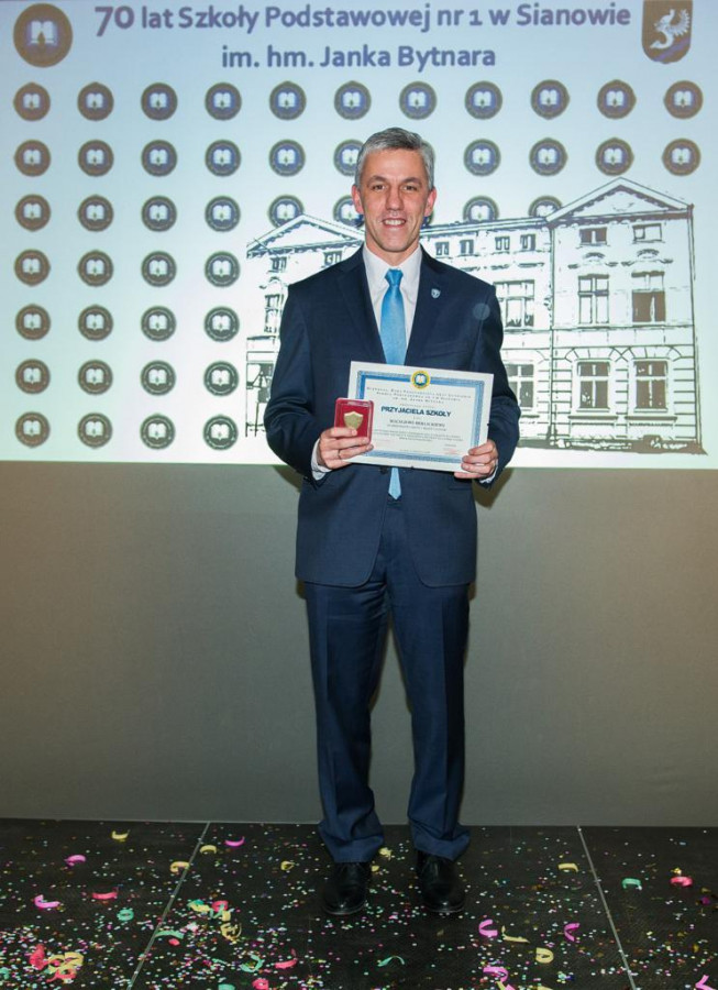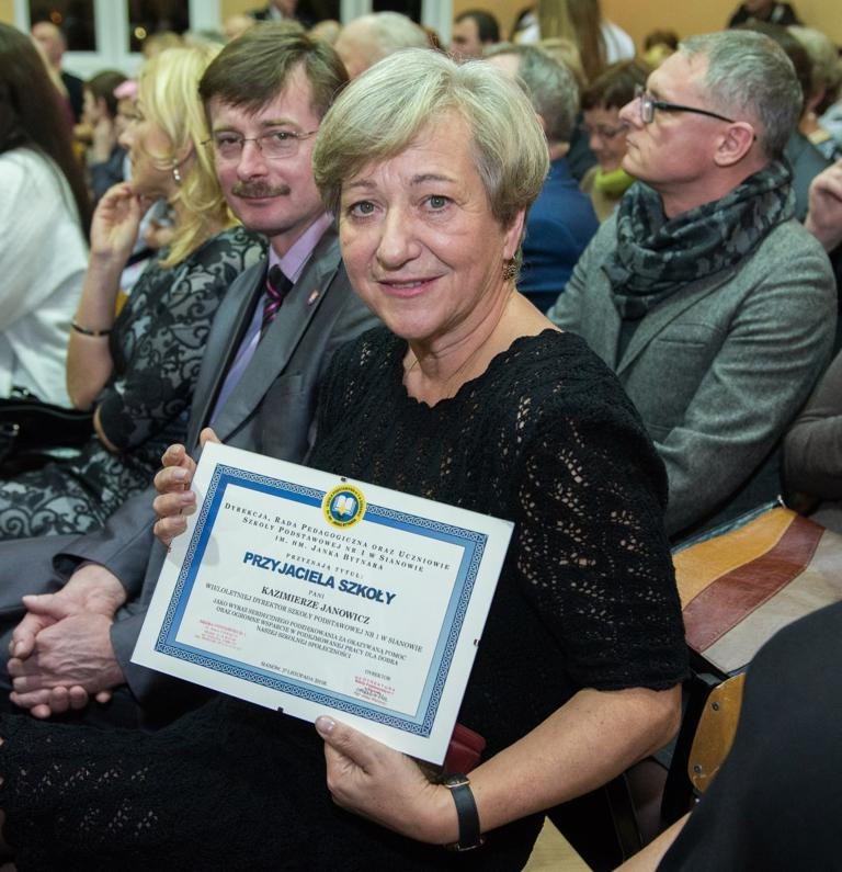 Jubileusz 70-lecia to świetna okazja, aby podziękować osobom oraz instytucjom zaangażowanym w działania przyczyniające się do lepszego funkcjonowania placówki. Tytuł „Przyjaciela szkoły” otrzymali: Pani Kazimiera Janowicz, Burmistrz Gminy i Miasta Sianów Pan Maciej Berlicki, Wiceburmistrz Gminy i Miasta Sianów Pan Marcin Posmyk oraz Gimnazjum Gminne w Sianowie.