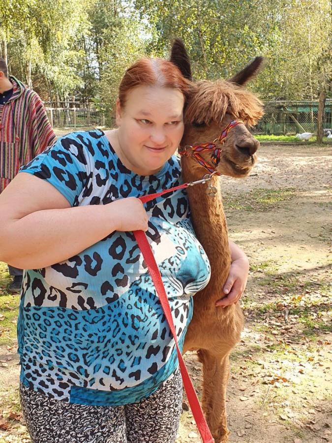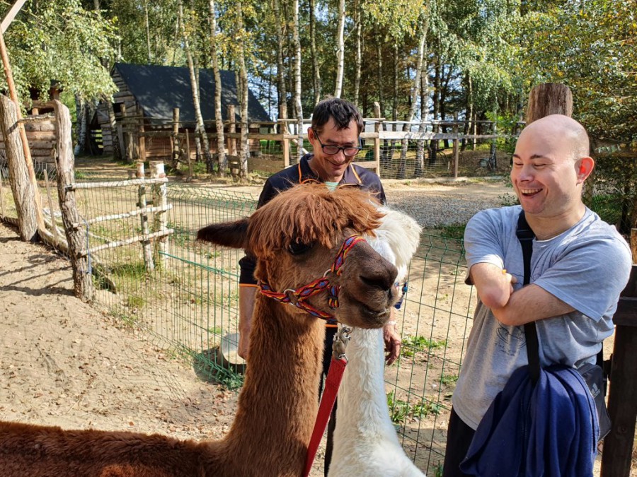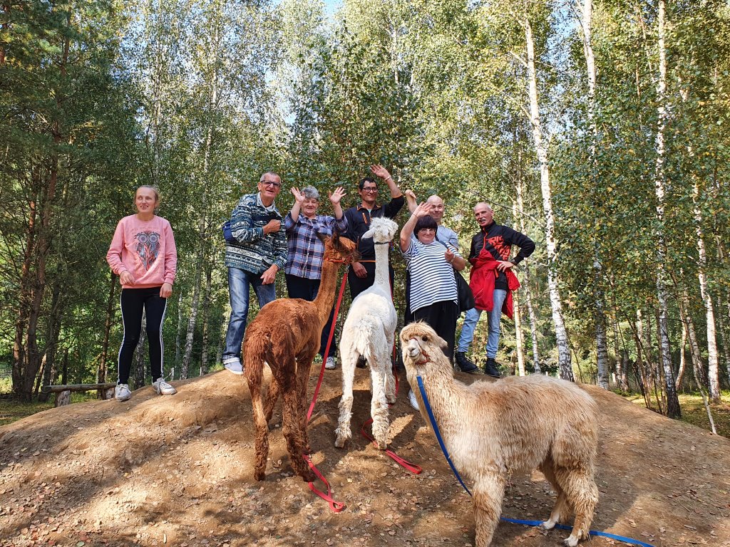 Dnia 22.09.2020r. uczestnicy z ŚDS „Szansa” wraz z opiekunami udali się do gospodarstwa agroturystycznego „Alpaki na Sosnowych Wzgórzach” w Sierakowie Sławieńskim. Główną atrakcją wyjazdu był kontakt ze światem przyjaznych zwierząt: 9 alpak, kóz Lady i Boba, papugi żako Fredka, gęsi Balbiny i Ptysia oraz 5 psiaków. Czas spędzony w towarzystwie alpak pozytywnie wpływa na rozwój sfery emocjonalnej i poznawczej oraz na poprawę samopoczucia. Kontakt ze zwierzętami uczy empatii i odpowiedzialności. Gospodarze spotkania poczęstowali nas świeżo upieczonym ciastem drożdżowym z owocami oraz wegetariańskim obiadem, który składał się z kotleta z mleka, kiszonej sałaty i kalafiora oraz wiejskich ziemniaczków. Podczas posiłku czas umilał nam pokaz mima Maksymiliana, który za swój występ został nagrodzony gromkimi brawami. Czas spędzony w gospodarstwie minął w przyjaznej, rodzinnej atmosferze. Doświadczyliśmy tam serdecznej gościnności, poznaliśmy zasady i tajniki zdrowego odżywiania i pozytywnego myślenia. Wyjazd zorganizowano w ramach projektu „Równość szans w Gminie Sianów”.