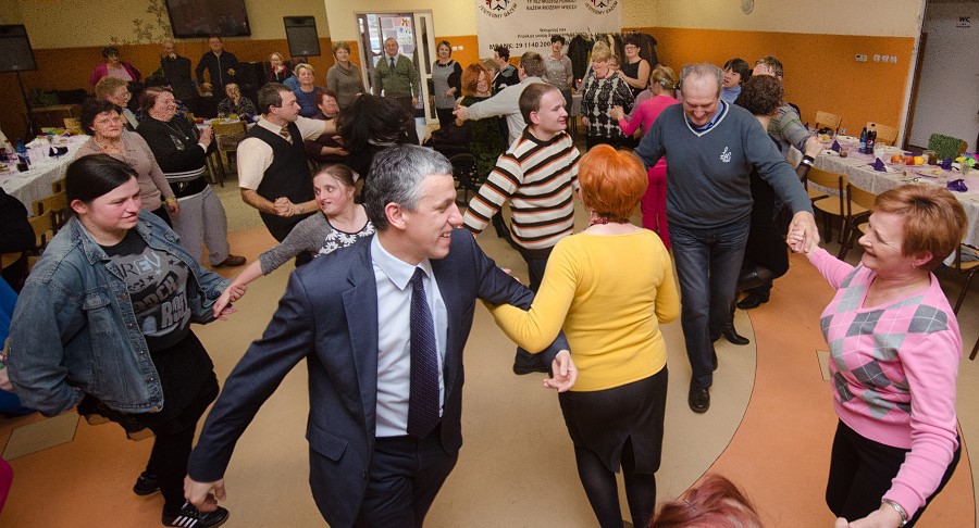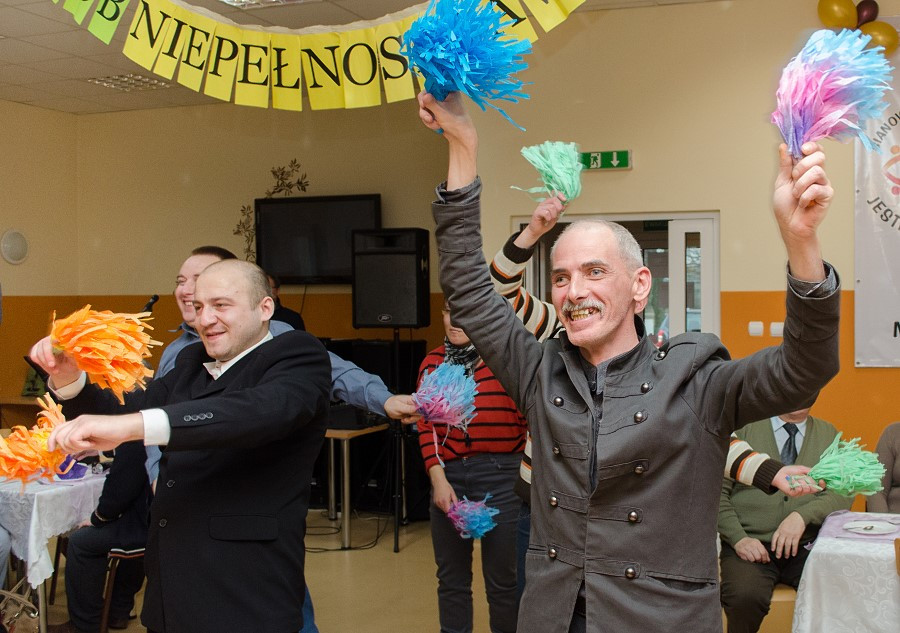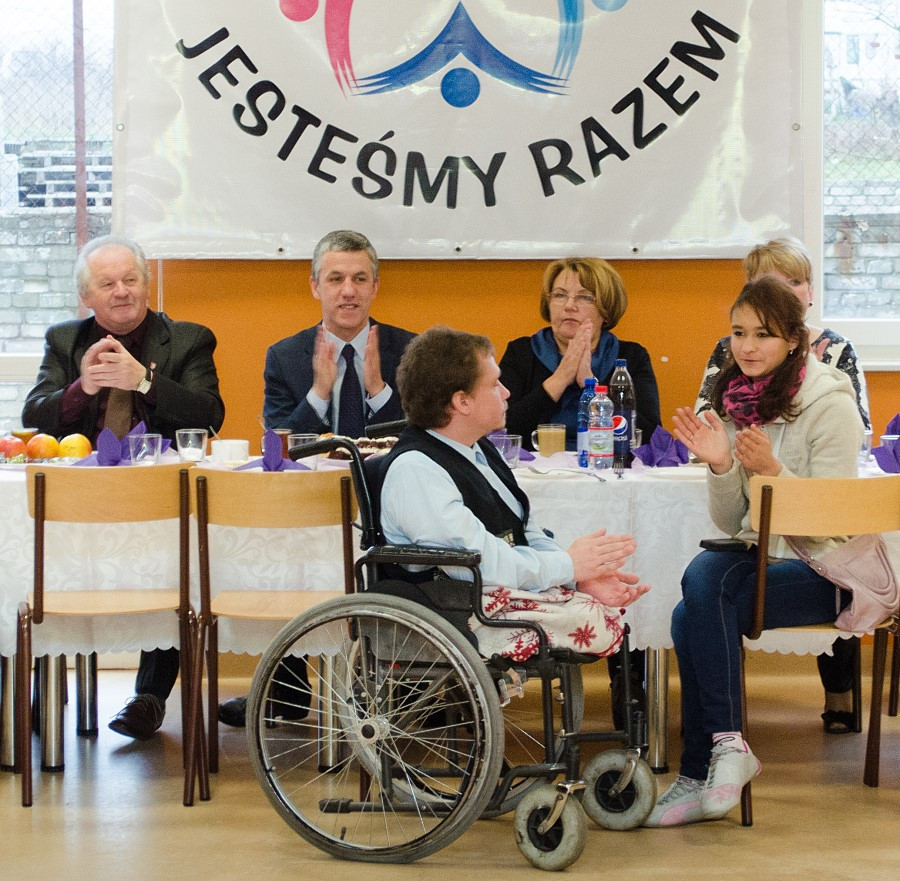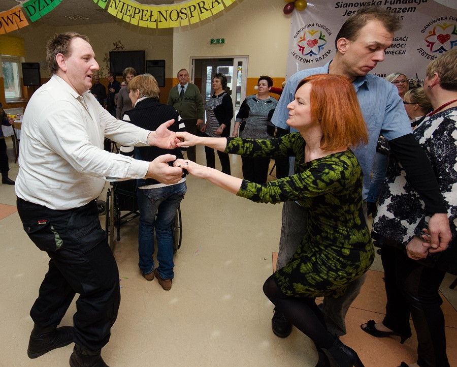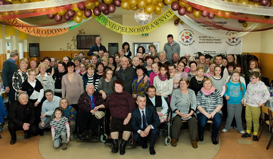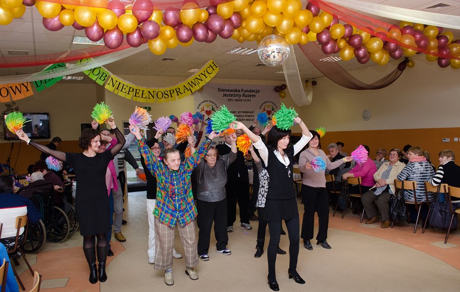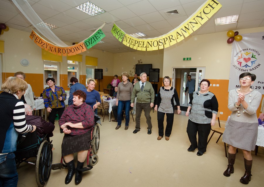 W dniu 3 grudnia 2014r. Miejsko-Gminny Ośrodek Pomocy Społecznej w Sianowie, Gminny Ośrodek Informacji dla Osób Niepełnosprawnych i Środowiskowy Dom Samopomocy w Sianowie już po raz siódmy zorganizował dla osób niepełnosprawnych z terenu gminy Sianów imprezę z okazji Międzynarodowego Dnia  Osób Niepełnosprawnych. Uroczystość odbyła się w Świetlicy w Skibnie, a gospodarzem spotkania była Halina Iwanisik – kierownik Miejsko-Gminnego Ośrodka Pomocy Społecznej w Sianowie. Wszystkim obecnym życzenia złożyli: Maciej Berlicki – Burmistrz Gminy i Miasta Sianów, Janusz Machała - Przewodniczący Rady Miejskiej. Wśród gości zaproszonych była również: Teresa Soróbko - Pełnomocnik Burmistrza ds. osób niepełnosprawnych. Podczas uroczystości domownicy Środowiskowego Domu Samopomocy w Sianowie pod kierunkiem Pani Doroty Ślubowskiej zaprezentowali taniec zumby, a następnie zaprosili gości do wspólnej nauki tego tańca. Uczestnicy spotkania wspólnie bawili się przy muzyce. Tradycyjnie w trakcie spotkania podany został poczęstunek w postaci serwisu kawowego oraz obiadu. Spotkanie udało się zorganizować dzięki wsparciu PFRON oraz środków z Gminnego Programu Działań na Rzecz Osób Niepełnosprawych.