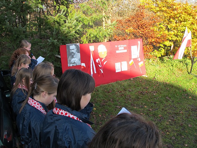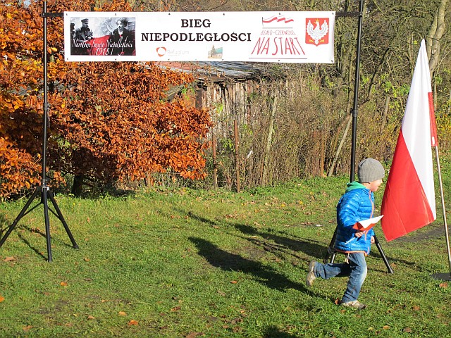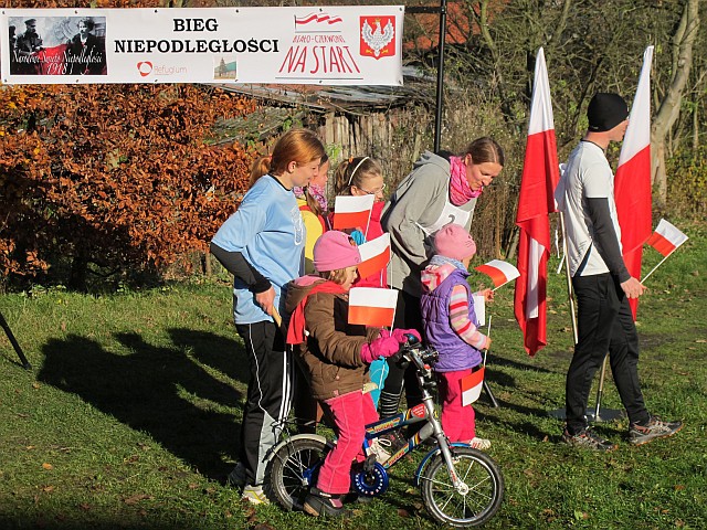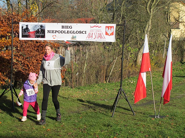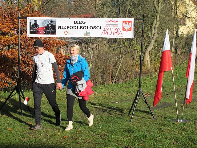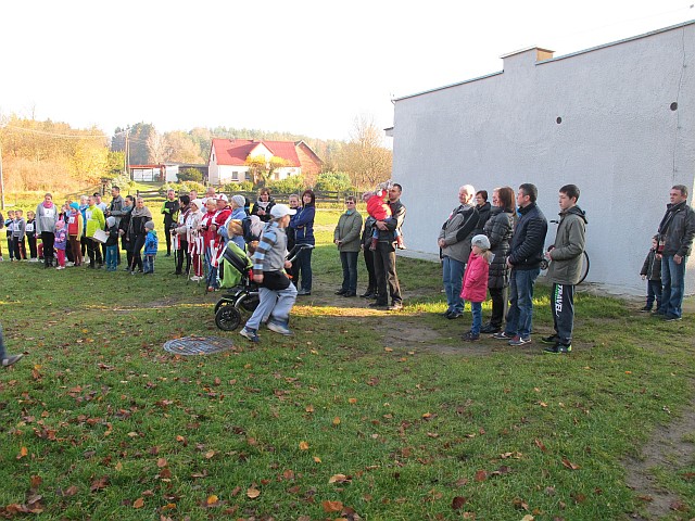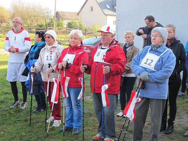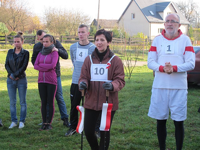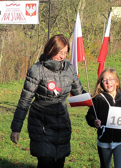 Obchody Święta Niepodległości na boisku w Szkole Podstawowej w Szczeglinie zgromadziły mieszkańców nie tylko z samego Szczeglina, ale również z okolicznych miejscowości. Na spotkaniu uczniowie przedstawili montaż słowno-muzyczny po czym odbył się Bieg Niepodległości. W Biegu wzięło udział 38 zawodników, w tym uczniowie, młodzież, młodzi rodzice ze swoimi maluchami w wózkach i grupa seniorów z kijkami, dołączyło też spontanicznie kilka osób. Po raz kolejny wystartował też w naszym Biegu Burmistrz byłej kadencji pan Ryszard Wątroba. Zawodników nie zniechęcił brak nagród w tegorocznym Biegu (rok temu Bieg w ramach projektu „Biało-czerwoni na start” były zapewnione cenne nagrody z funduszy FIO). Na serdeczne podziękowania zasłużyły wolontariuszki zapewniające obsługę medyczną: na trasie pani Małgorzata Jarząbek, na terenie boiska – pani Marzena Puzio. Po pokonaniu trasy 1918 metrów, zawodnicy wracali na metę niosąc z dumą wręczoną im na półmetku chorągiewkę, bo okazało się, że wszyscy chcieli pobiec nie po nagrodę, ale właśnie po biało-czerwoną chorągiewkę.