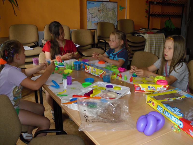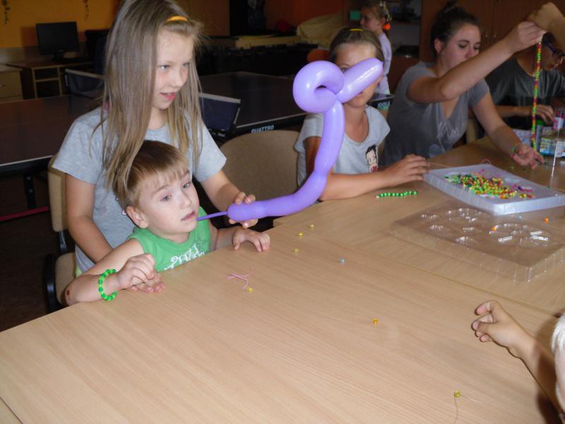 Mamy już za sobą spływ kajakowy, który dostarczył dzieciom wiele zaskakujących wrażeń, szczególnie tym, którzy w tym roku płynęły po raz pierwszy. Wyjazd na basen „Jan” do Darłówka i zabawy w Misiowej Dolinie. Temperatury wyjątkowo tego lata są bardzo wysokie, dlatego dzieci dużo czasu spędzają w świetlicy, ale z przyjemnością korzystają z gier planszowych i internetowych, układają puzzle, malują, wyklejają i modelują, grają w ping ponga, a między zajęciami plastycznymi bawią się w różne zabawy integracyjne.
