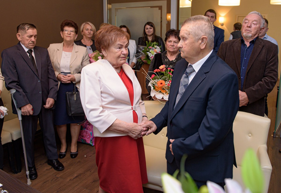 W tym dniu z całą pewnością nie mogło zabraknąć wspólnego toastu, życzeń i kwiatów, bowiem 19 października 2019 r. na Sali ślubów w Urzędzie Stanu Cywilnego w Sianowie odbyła się niecodzienna uroczystość jubileuszowa „Diamentowe Gody” Państwa Jadwigi i Bogdana Maziarzów z Karnieszewic.