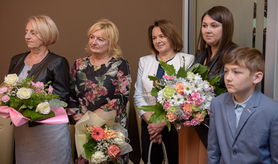W oficjalnym powitaniu kierownik Urzędu Stanu Cywilnego Mirosława Kapuścińska życzyła szacownym jubilatom kolejnych szczęśliwych lat w zdrowiu i spokoju w gronie kochającej rodziny, a Pani Marika Bożyk przeczytała w skrócie życiorys jubilatów.