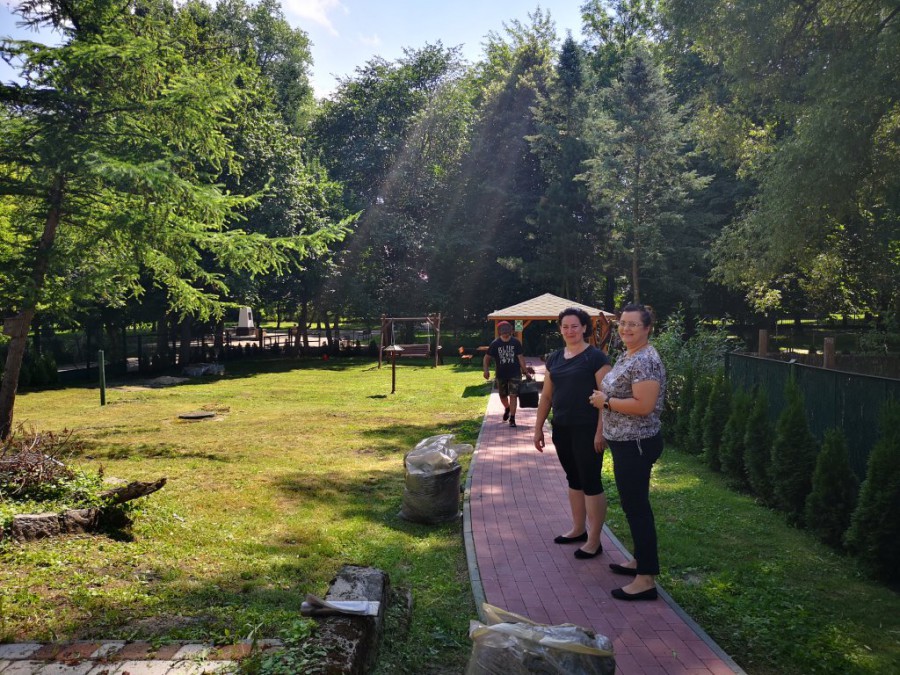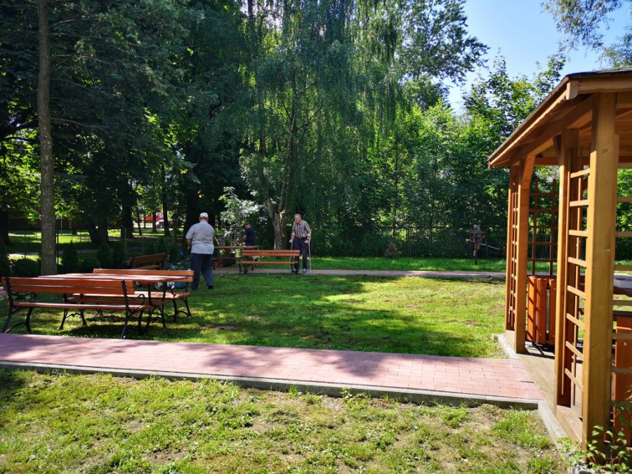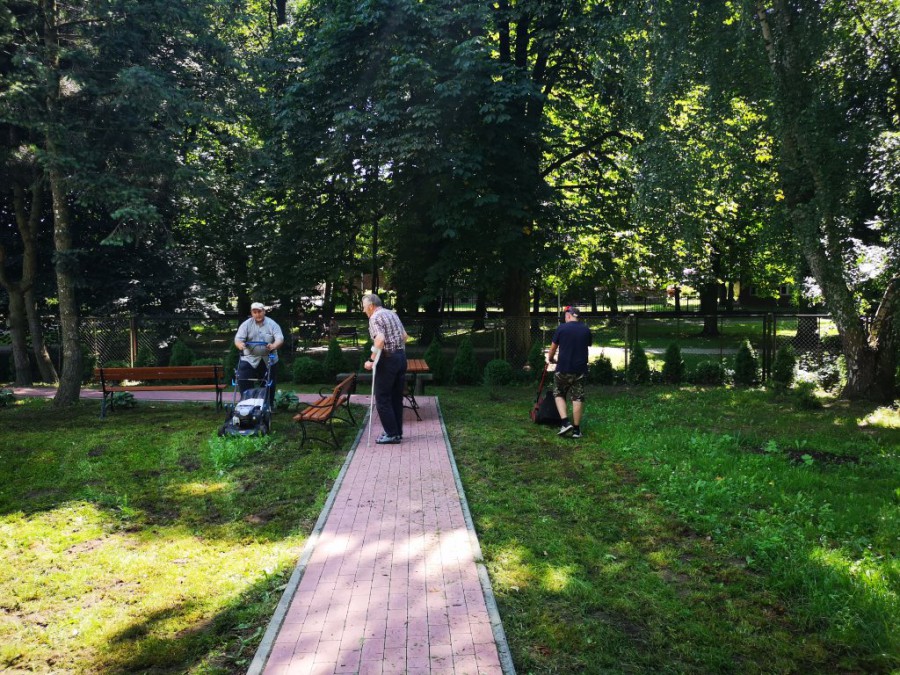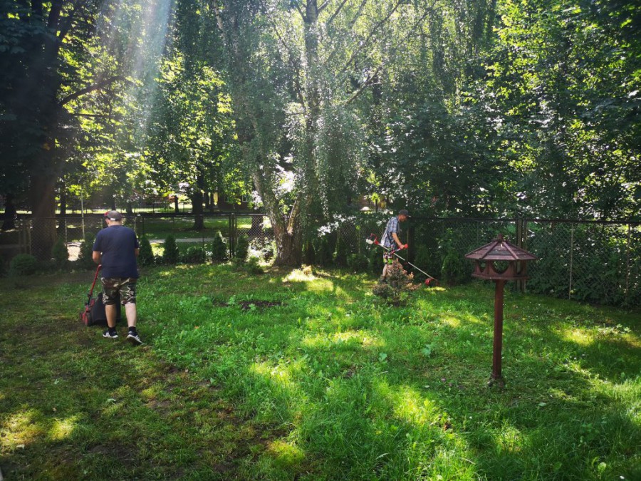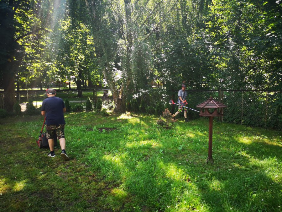 Wysoka temperatura i częste opady deszczu spowodowały, że ogród przy Dziennym Domu Seniora w Sianowie „poprosił” o wizytę specjalistów od cięcia trawy. Tym razem z pomocą przyszli uczestnicy zajęć Środowiskowego Domu Samopomocy „Szansa”. To Pan Zbyszek, Pan Tomek i Pan Zenon od samego rana przystąpili do pracy.  Przez kilka godzin w szczególnie trudnych warunkach (wysokiej temperatury) zlikwidowali nadmiar ziemi z kretowisk, kosili trawę, przestawiali sprzęty do wypoczynku, porządkowali teren ogrodu. W imieniu Seniorów serdecznie dziękujemy