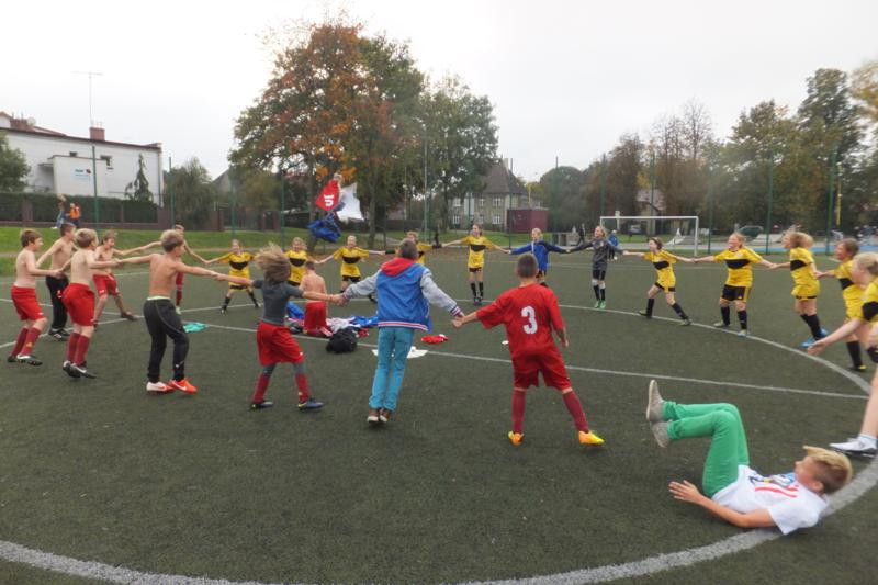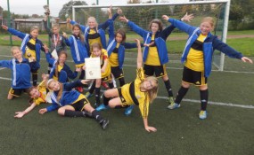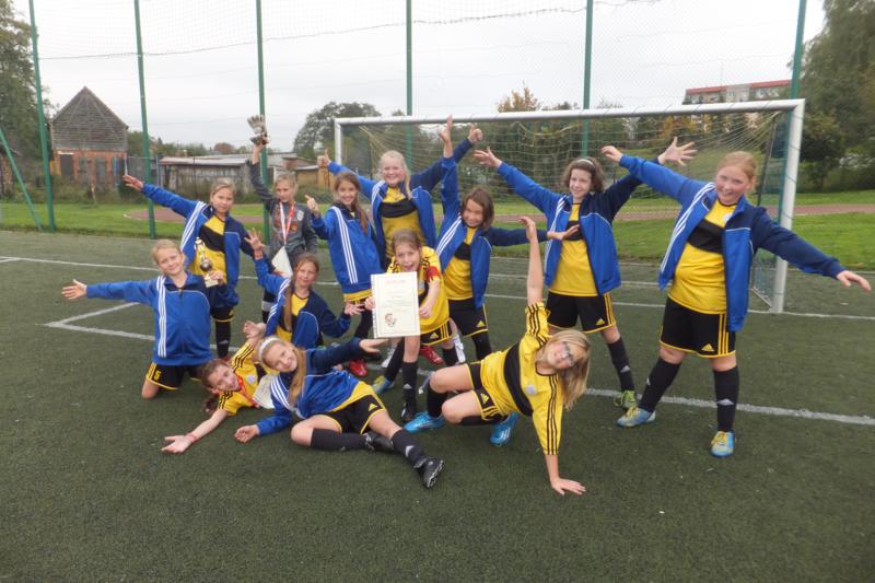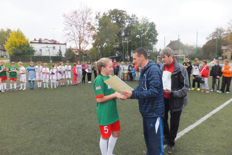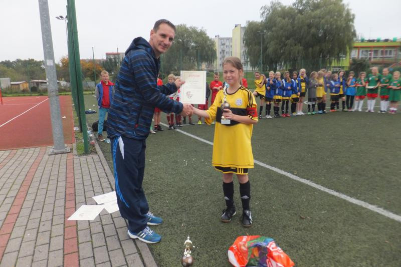 Wśród dziewcząt wystartowały tylko 3 zespoły i pierwsze miejsce z dwoma zwycięstwami zajęła SP 2 Sianów ( opiekun Jędrzej Bielecki). Drugie miejsce przypadło SP Dąbrowa ( opiekun Dorota Szamańska) a trzecie SP1 Sianów ( opiekun Robert Kowalczyk). Najlepszą bramkarką została Justyna Maśnik a królową strzelczyń Oliwia Salwerowicz 4 bramki. Obie piłkarki z SP 2 Sianów. Najlepsza zawodniczką została Dagmara Petrus z SP Dąbrowa. Zwycięski zespół wystapił w zestawieniu: Justyna Maśnik, Nikola Polek, Oliwia Salwerowicz, Adrianna Banasiak, Klaudia Kalarus, Natalia Jarmakowicz, Malwina Kamińska, Karolina Czerenkiewicz, Oliwia Woch, Oliwia Tuziemska, Aleksandra Pawczyńska, Kamila Bujak. Nagrody ufundował Urząd Gminy i Miasta Sianów a organizatorem była  Szkoła Podstawowa nr 2 Sianów.