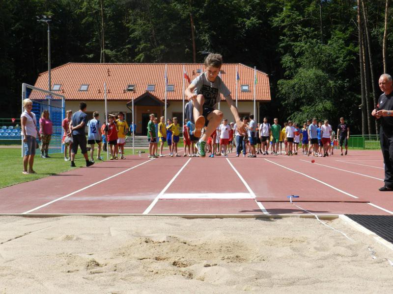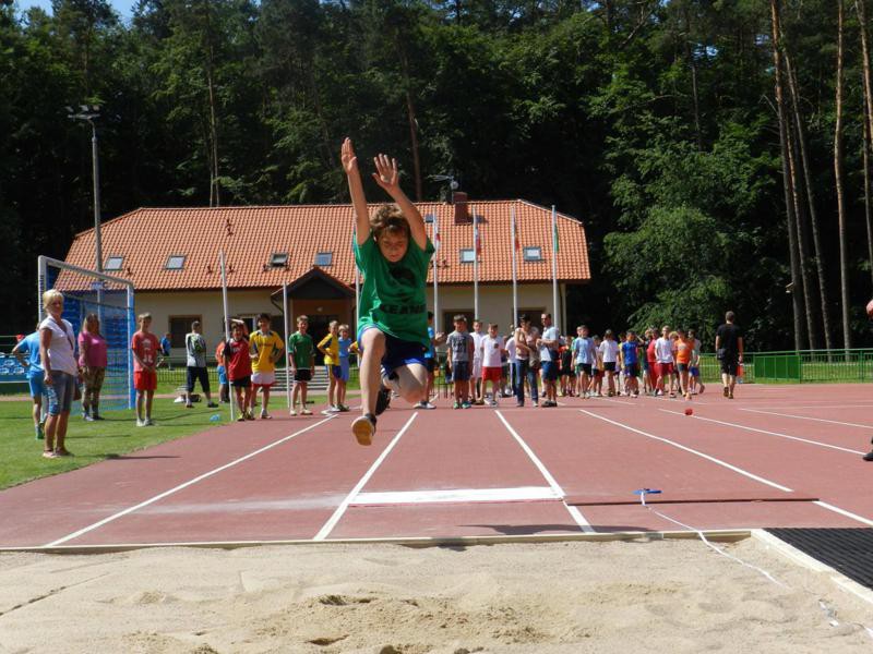 Gorący Złocieniec przywitał Mistrzów Powiatu na zawodach Wojewódzkich w Trójboju lekkoatletycznym. Trzy dziewczynki z Gminy Sianów Martyna Pietrzak (SP Sucha Koszalinska), Patrycja Kuszmar (SP nr 1 Sianów), Dagmara Petrus (SP Dąbrowa) i dwóch chłopców za naszej gminy: Marcin Bartosik i Tomasz Grosiak (SP nr 2 Sianów) oraz przedstawiciel z SP nr 3 Bobolice –Jakub Cach. Do zawodów przystąpili najlepsi lekkoatleci z województwa zachodniopomorskiego 45 chłopców i 45 dziewcząt do klasy piątej. Trójbój składa się z: biegu krótkiego 60 m. rzutu piłeczka palantową i skoku w dal. Na wynik zawodnika składają się trzy konkurencje, każda przeliczana jest na punkty a o wyniku końcowym decyduje suma punktów z poszczególnych dyscyplin. Znakomicie zaprezentowała się Martyna Pietrzak która poprawiła 2 swoje wyniki życiowe (skok – 4,00 m, bieg – 9,25s, rzut – 35,5 m) zajęła 9 miejsce, zdobywając 184 pkt. Młodej lekkoatletce zabrakło 5 pkt do brązowego medalu. Równie dobrze zaprezentowała się Dagmara Petrus (skok – 3,69 m, bieg – 9,58s, rzut – 34,5 m ) zajmując 21 miejsce, zdobywając 160 pkt. Patrycja Kuszmar zajęła także bardzo dobre 22 miejsce, zdobywając 159 pkt. ( skok – 3,50 m, bieg – 9,58 s, rzut – 36,5m). Wśród chłopców najlepiej zaprezentował się Jakub Cach zajmując 34 miejsce, 120 pkt (skok – 3,85 m, bieg – 9,92 s, rzut – 49m). 118 punktów zdobył Marcin Bartosik zajmując 38 miejsce (skok – 3,74 m, bieg – 9,95 s, rzut – 46 m). Tomasz Grosiak zajął 41 miejsce zdobywając 114 pkt (skok – 3,98 m, bieg – 9,69 s, rzut – 37,5m). Opiekunami zawodniczek był Sebastian Wroński, zawodników z SP nr 2 Sianów Elżbieta Missok, a Jakuba z SP nr 3 Bobolice – Zbigniew Retkowski. Gorąco dopingowali swoich zawodników p. Renata Grosiak i Małgorzata Pietrzak.