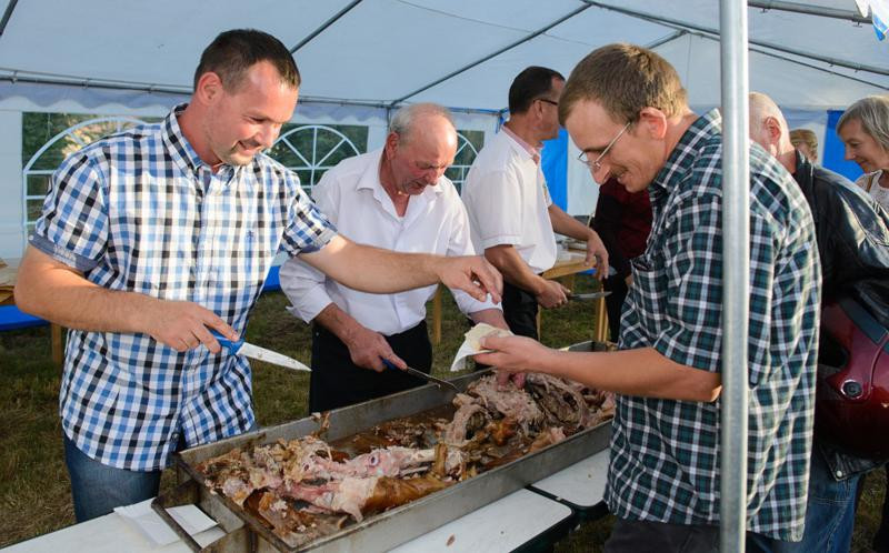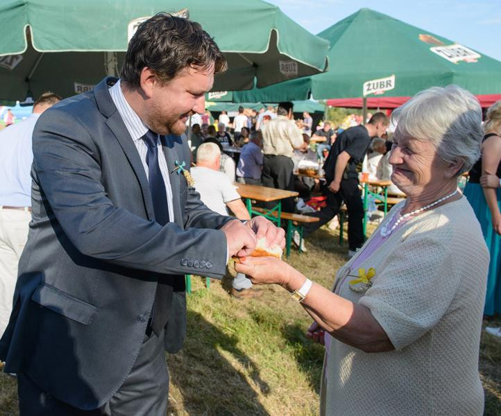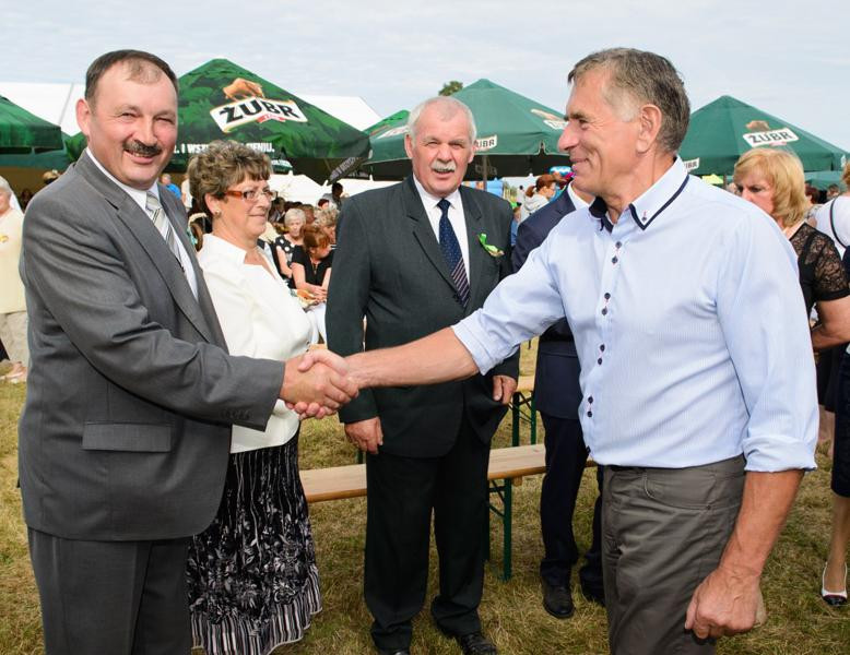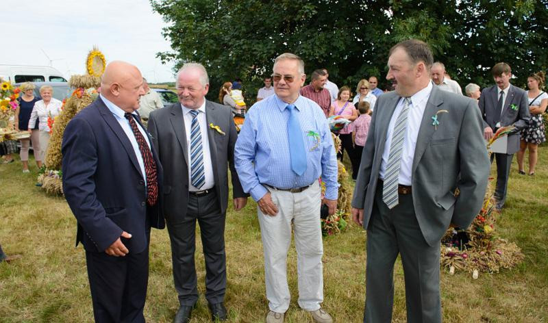 Starostowie tegorocznych Dożynek Gminnych Pan Tadeusz Kołaczek z Bielkowa i Pani Maria Łańko wraz z Burmistrzem Gminy i Miasta Sianów Maciejem Berlickim podzielili się chlebem ze wszystkimi sołectwami z terenu Gminy i Miasta Sianów.