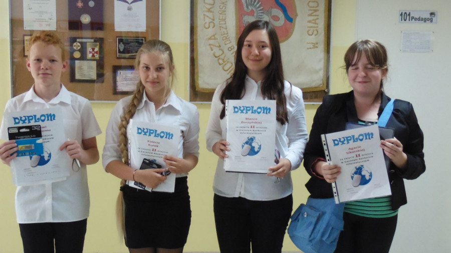 W imieniu uczniów dziękujemy za nagrody ufundowane przez Burmistrza Gminy i Miasta Sianów.