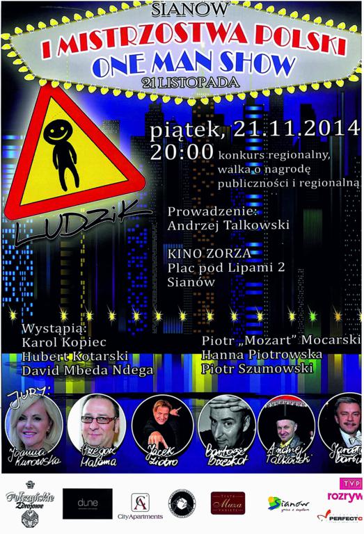 Burmistrz Gminy i Miasta Sianów wraz ze Stocznią Filmowców i Teatrem Variette Muza serdecznie zaprasza na występ uczestników I MISTRZOSTW POLSKI ONE MAN SHOW LUDZIK 2014, który odbędzie się między innymi w Sianowie 21 listopada 2014 roku o godzinie 20:00 w kinie Zorza, Plac pod Lipami 2.