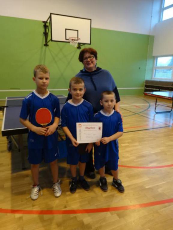 14 listopada bieżącego roku w szkole w Suchej Koszalińskiej odbyły się gminne eliminacje do Igrzysk Młodzieży Szkolnej w drużynowym tenisie stołowym. Udział mogły wziąć wszystkie szkoły podstawowe z gminy Sianów. W rezultacie startowały drużyny z trzech szkół. W kategorii dziewcząt wygrała drużyna z SP Sucha Koszalińska w składzie: Martyna Pietrzak, Klaudia Kowalczyk i Ewelina Lichmańska. II miejsce zajęły dziewczynki z SP Dąbrowa (Dagmara Petrus i Sandra Rałowicz), III -SP 2 Sianów (Nikola Polek i Oliwia Salwerowicz). Natomiast w zmaganiach chłopców zwyciężyli zawodnicy z SP 2 Sianów (Mateusz Wróblewski i Marcin Grenda), II – SP Dąbrowa (Jakub Apanel i Maciej Seweryn), III - SP Sucha Koszalińska (Hubert Darull, Dawid Lichmański oraz Maksym Szłapa). Drużyny z pierwszych miejsc jadą na dalszy etap rozgrywek, który odbędzie się już wkrótce w Gimnazjum Gminnym w Sianowie. Wszystkim dziękuję za zaangażowanie i sportową walkę. Szczególne podziękowania ślę do opiekunów pani Doroty Szymańskiej oraz pana Jędrzeja Bieleckiego, którzy przyjechali ze swoimi podopiecznymi na zawody.