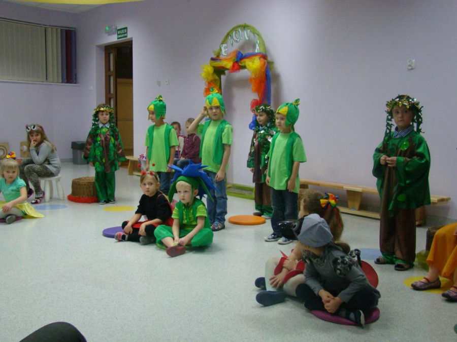 13 listopada grupa starszaków - KRASNALE – zastała zaprzysiężona w poczet Przedszkolnego Koła Ekologicznego „EKOLUDEK”. Taka uroczystość już od początku istnienia naszej placówki stała się naszą wieloletnią tradycją, którą tego roku uświetnili swoją obecnością z-ca burmistrza UG i M Sianów – Marcin Posmyk, dyrektor ZAOO – Helena Zochniak, kierownik Referatu Ochrony Środowiska – Dawid Tokarczyk, przedstawiciele Nadleśnictwa Karnieszewice – Joanna i Hubert Kapuścińscy oraz oczywiście rodzice dzieci 5-letnich. Na samym początku dzieci zaprezentowały część artystyczną pt. „Pogotowie ekologiczne”. Cały występ słowno- muzyczny przebiegał w scenerii leśnej, którą charakteryzowały dzieci ubrane w stroje: drzew, kwiatów, wiewiórki, sowy, wróbelków, biedronki i gromady dzieci, które swoim zachowaniem manifestowały o ochronę i dbanie środowiska leśnego.