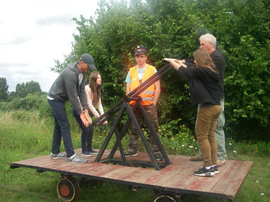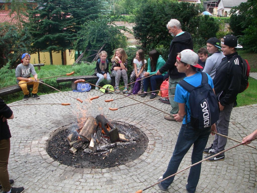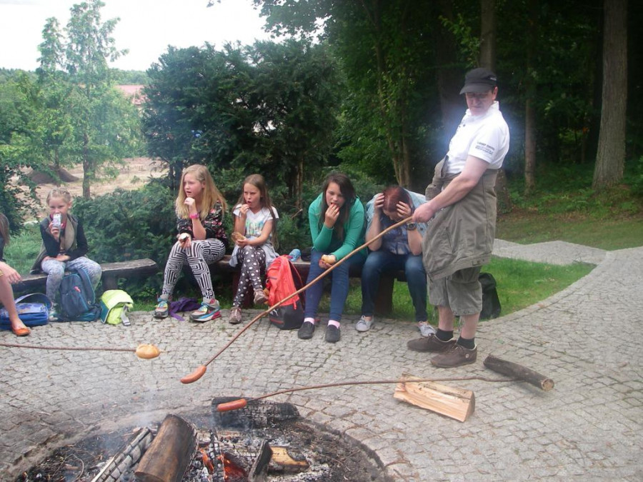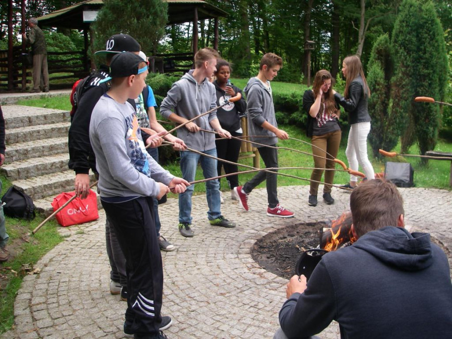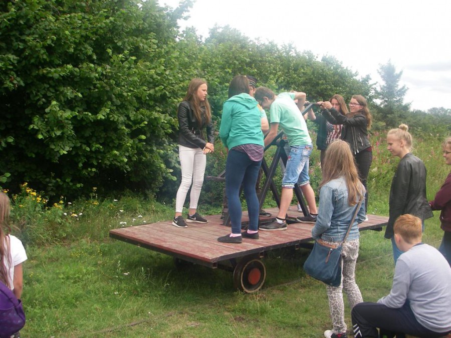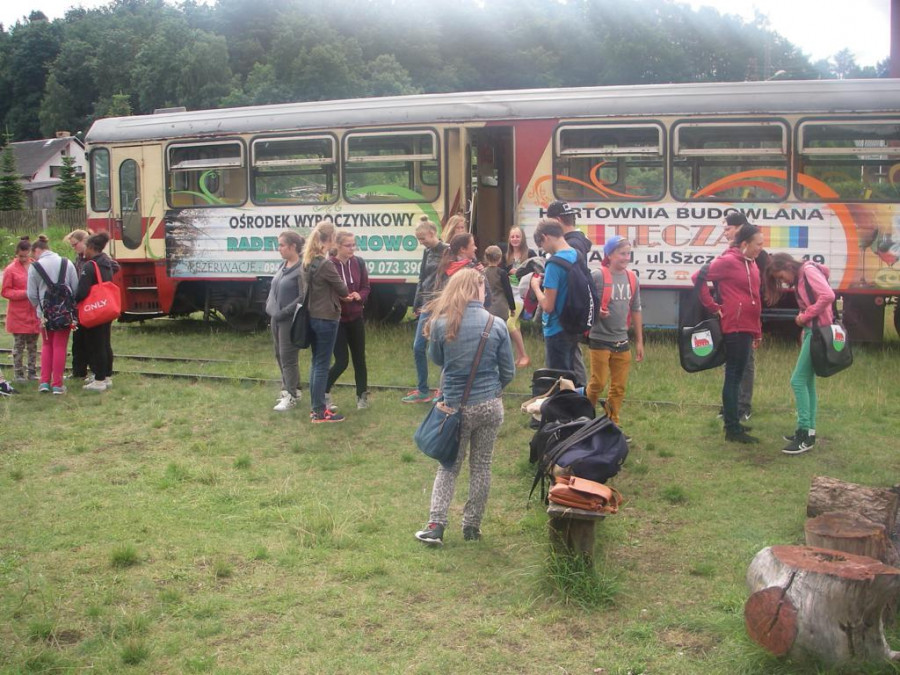 W środę 29 lipca, razem z naszymi niemieckimi gośćmi udaliśmy się w kolejną podróż. Wycieczka była krótka, ale bardzo ciekawa. Najpierw autokarem udaliśmy się do Koszalina. Tam na stacji przesiedliśmy się do wagoników kolejki wąskotorowej, która zawiozła nas do Manowa. Zabytkowa wąskotorówka liczy sobie 117 lat i jest jedną z zaledwie trzech działających w Polsce kolei o unikalnym rozstawie toru wynoszącym 1000 mm. Trasa kolejki wynosi obecnie 12 km. Na miejscu w Manowie czekał już przedstawiciel Nadleśnictwa Manowo – leśnik, który przeprowadził nas ścieżką edukacyjną po Czaplej Górze. W tym rezerwacie przyrody znajdują się m.in. kolonia czapli siwej oraz pomniki przyrody. Po spacerze odbyło się ognisko z kiełbaskami, później każdy chętny mógł spróbować samodzielnie przejechać się drezyną ręczną. Wieczorem, w sali gimnastycznej, odbył się mecz koszykówki mieszanych polsko-niemieckich drużyn. Można też było pograć w piłkę nożną i tenisa stołowego.
