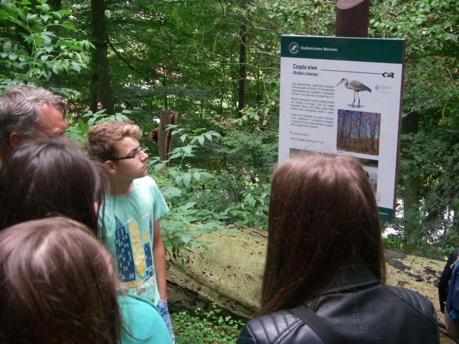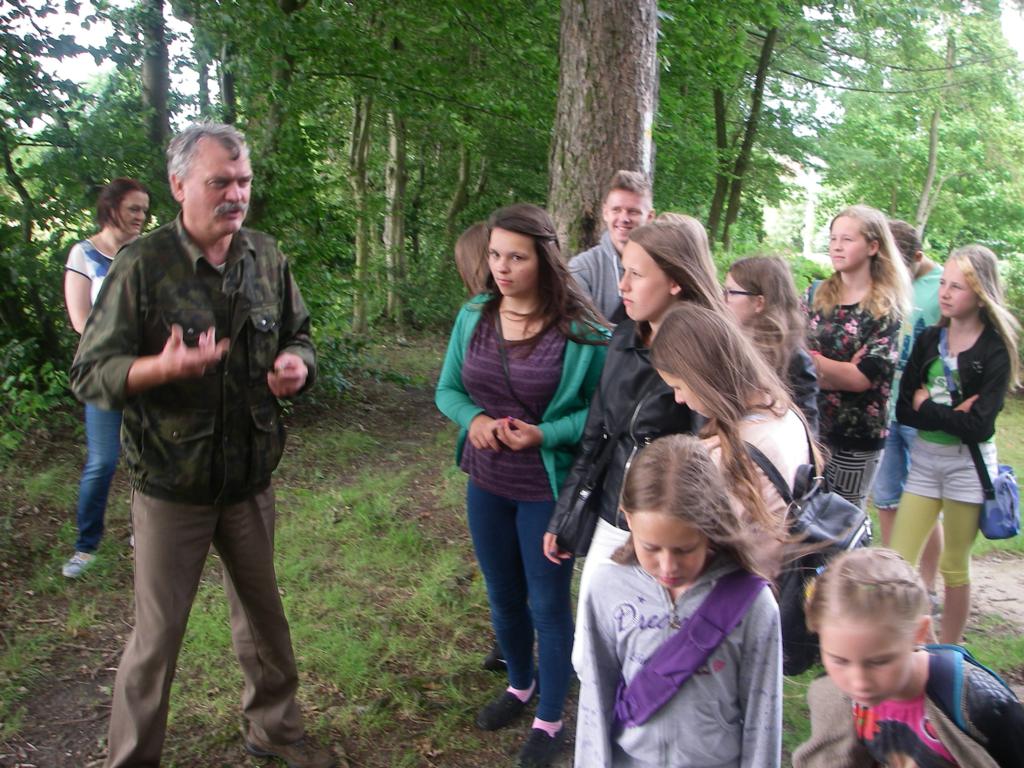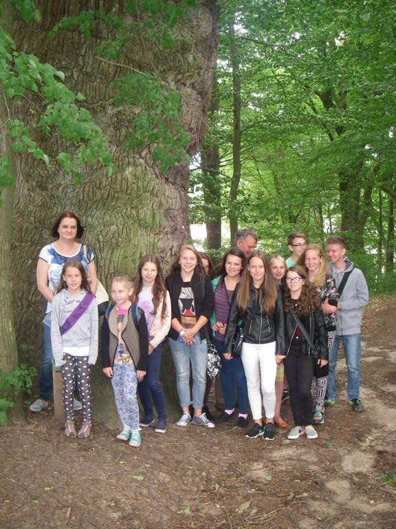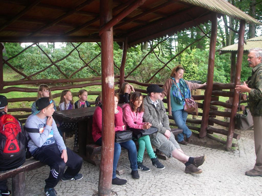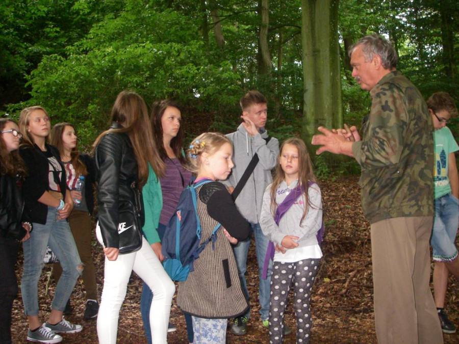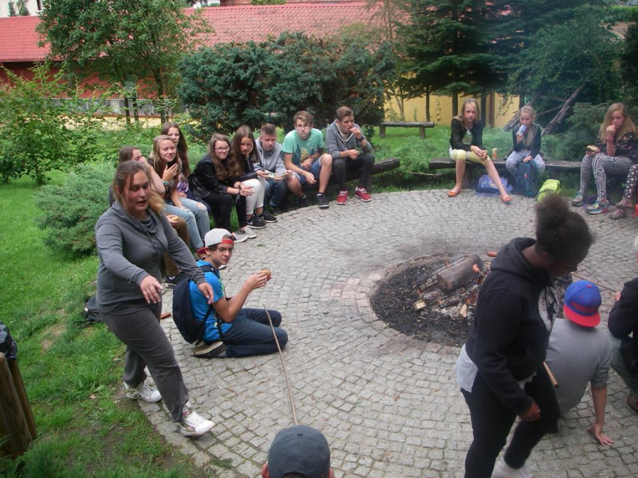 W środę 29 lipca, razem z naszymi niemieckimi gośćmi udaliśmy się w kolejną podróż. Wycieczka była krótka, ale bardzo ciekawa. Najpierw autokarem udaliśmy się do Koszalina. Tam na stacji przesiedliśmy się do wagoników kolejki wąskotorowej, która zawiozła nas do Manowa. Zabytkowa wąskotorówka liczy sobie 117 lat i jest jedną z zaledwie trzech działających w Polsce kolei o unikalnym rozstawie toru wynoszącym 1000 mm. Trasa kolejki wynosi obecnie 12 km. Na miejscu w Manowie czekał już przedstawiciel Nadleśnictwa Manowo – leśnik, który przeprowadził nas ścieżką edukacyjną po Czaplej Górze. W tym rezerwacie przyrody znajdują się m.in. kolonia czapli siwej oraz pomniki przyrody. Po spacerze odbyło się ognisko z kiełbaskami, później każdy chętny mógł spróbować samodzielnie przejechać się drezyną ręczną. Wieczorem, w sali gimnastycznej, odbył się mecz koszykówki mieszanych polsko-niemieckich drużyn. Można też było pograć w piłkę nożną i tenisa stołowego.