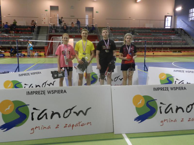 Bardzo dobrze zaprezentowali się nasi zawodnicy. W grze podwójnej młodziczek 1 miejsce wywalczyły Michalina Surówka/Patrycja Kuszmar. W finale dziewczyny pokonały parę z Solca Kujawskiego Agnieszkę Bartosz/Martynę Pietrzak 17:21, 21:19, 21:18