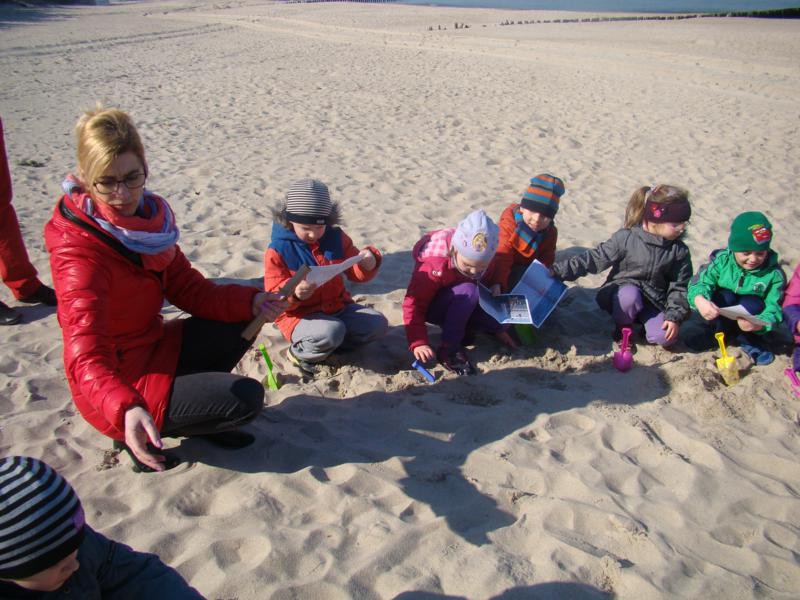Po wysłuchaniu listu rozpoczęła się nadmorska wędrówka przedszkolaków po ukryty skarb Morza Bałtyckiego. Kolejne odnajdywane przez dzieci kawałki mapy wraz z ilustracją uświadamiały im, co przyczynia się do zanieczyszczania wód morskich i w jaki sposób należy chronić morski świat przed zniszczeniem. Taka edukacyjna zabawa z każdym odnalezionym kawałkiem mapy wyzwalała u przedszkolaków coraz większą ciekawość.