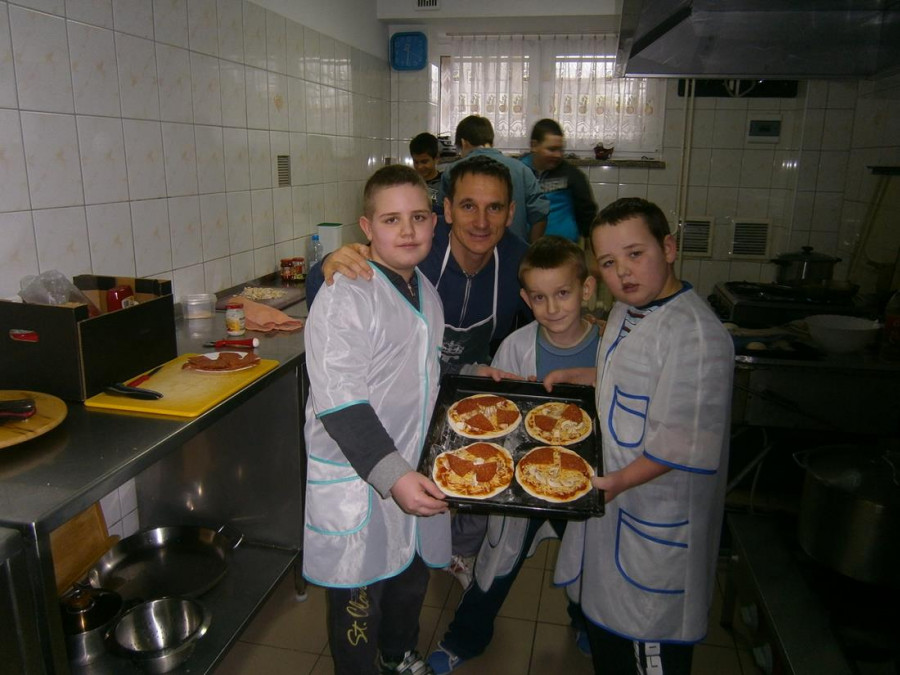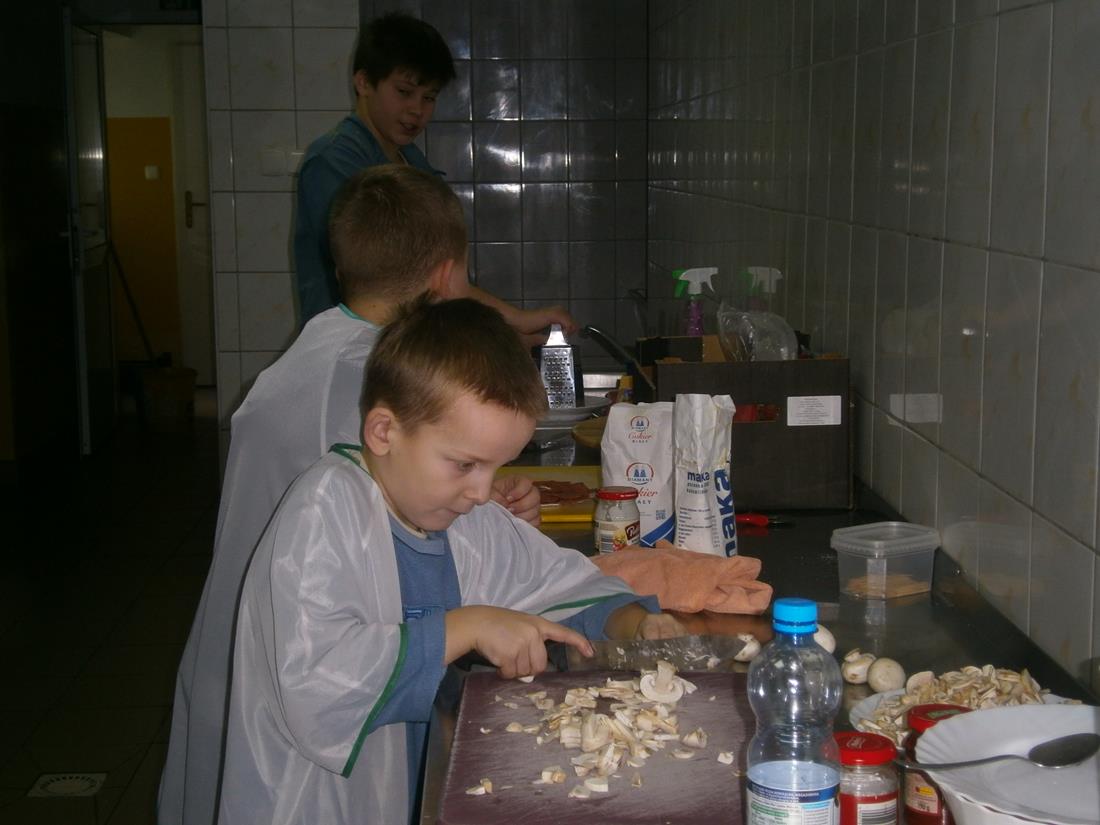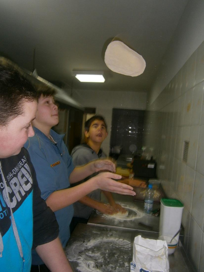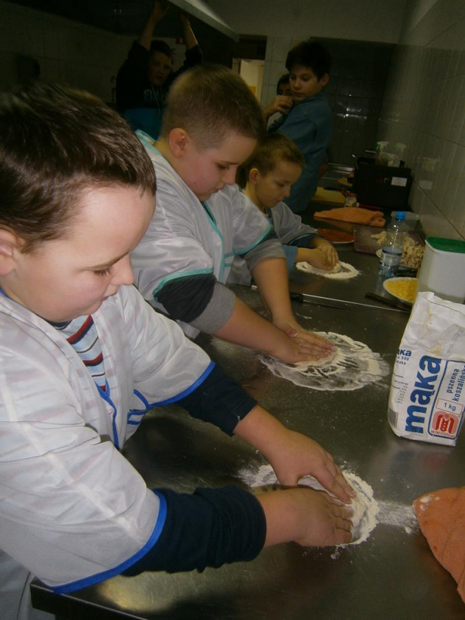 Kolejnego dnia uczniowie piekli pizzę na cienkim cieście. Dominowala margarita, all funghi. Przygotowanie sosu na pizzę, tarkowanie sera, krojenie pieczarek, rozkręcanie kulek na pizzę, przygotowanie stanowiska do pracy, nakrycie stołu i posprzątanie po pracy znakomicie uczyło dyscypliny kulinarnej. Chrupkie cienkie ciasto było na tyle smaczne, ze nie został ani jeden kawałek, a uczniowie dopytywali o jeszcze. Kolejnym etapem szkolenie otwarcie pizzeriiJ jako sposób na własny biznes.