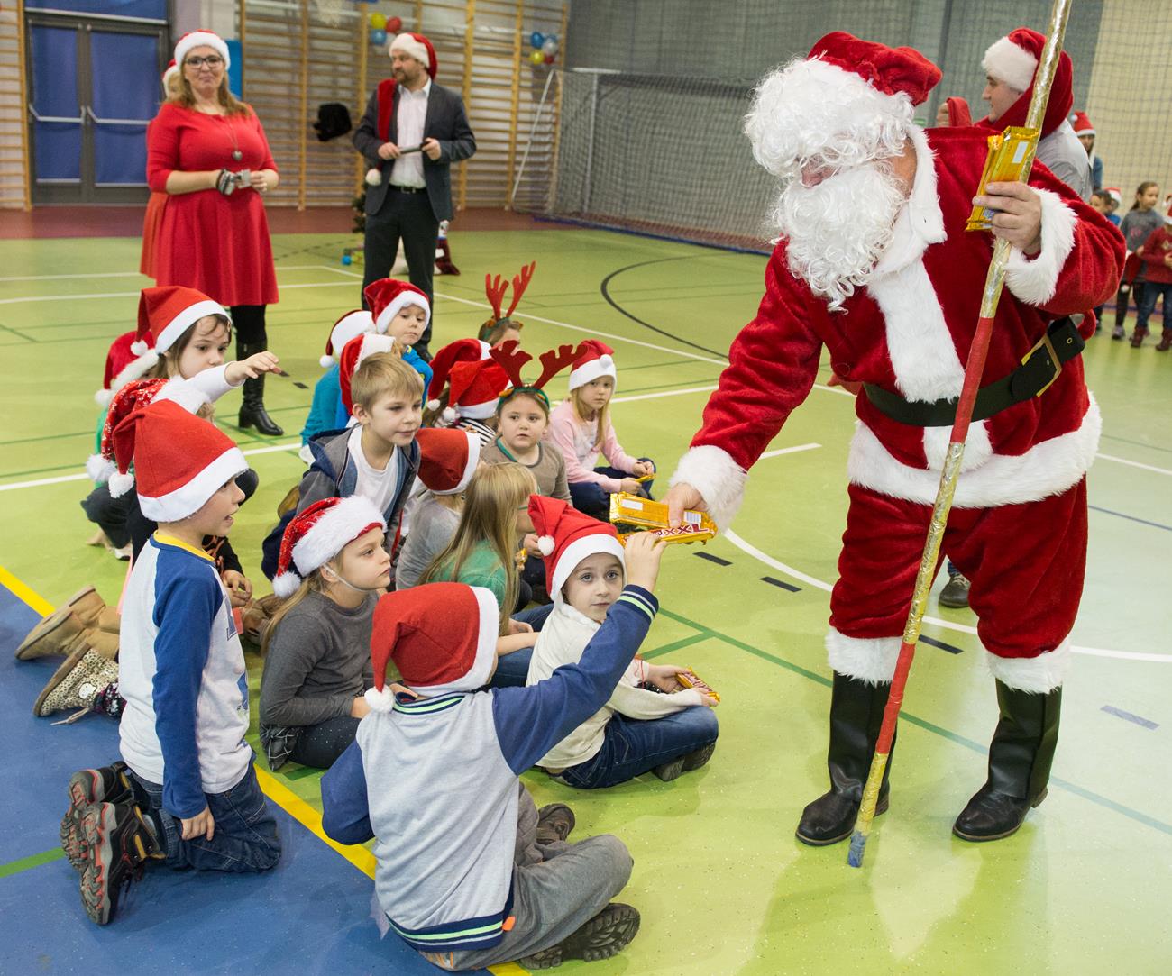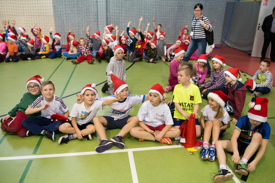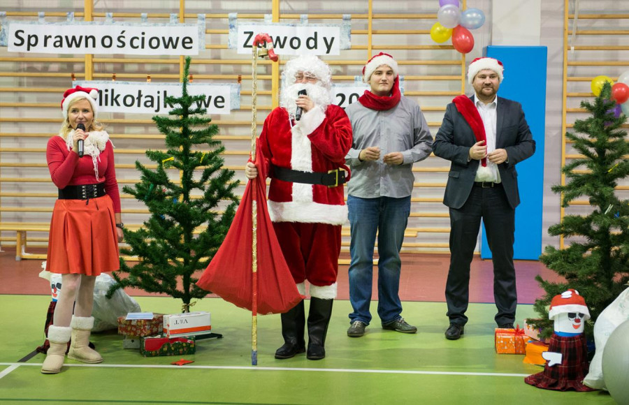 W piątek, 4 grudnia na Hali Sportowej przy Szkole Podstawowej nr 2 w Sianowie, odbyły się Sprawnościowe Zawody Mikołajkowe uczniów klas I - III szkół podstawowych z całej gminy Sianów. Wesołą zabawę w duchu sportowej rywalizacji zorganizowali i prowadzili nauczyciele wychowania fizycznego z SP2 - pani Dorota Bindas - Burdzik, pani Elżbieta Missok, pan Jędrzej Bielecki oraz Dyrektor Szkoły pan Sebastian Bober. O szczególną oprawę imprezy zadbała pani Elżbieta Missok. Miłą niespodziankę dla wszystkich dzieci przygotował Burmistrz Gminy i Miasta Sianów pan Maciej Berlicki, który wysłał do nas Mikołaja wraz ze słodkościami. Wśród towarzyszących Mikołajowi pomocników zauważyliśmy wiceburmistrza pana Marcina Posmyka. Dziękujemy wszystkim za wspaniałą atmosferę podczas zawodów oraz sponsorowi mikołajowej wizyty!