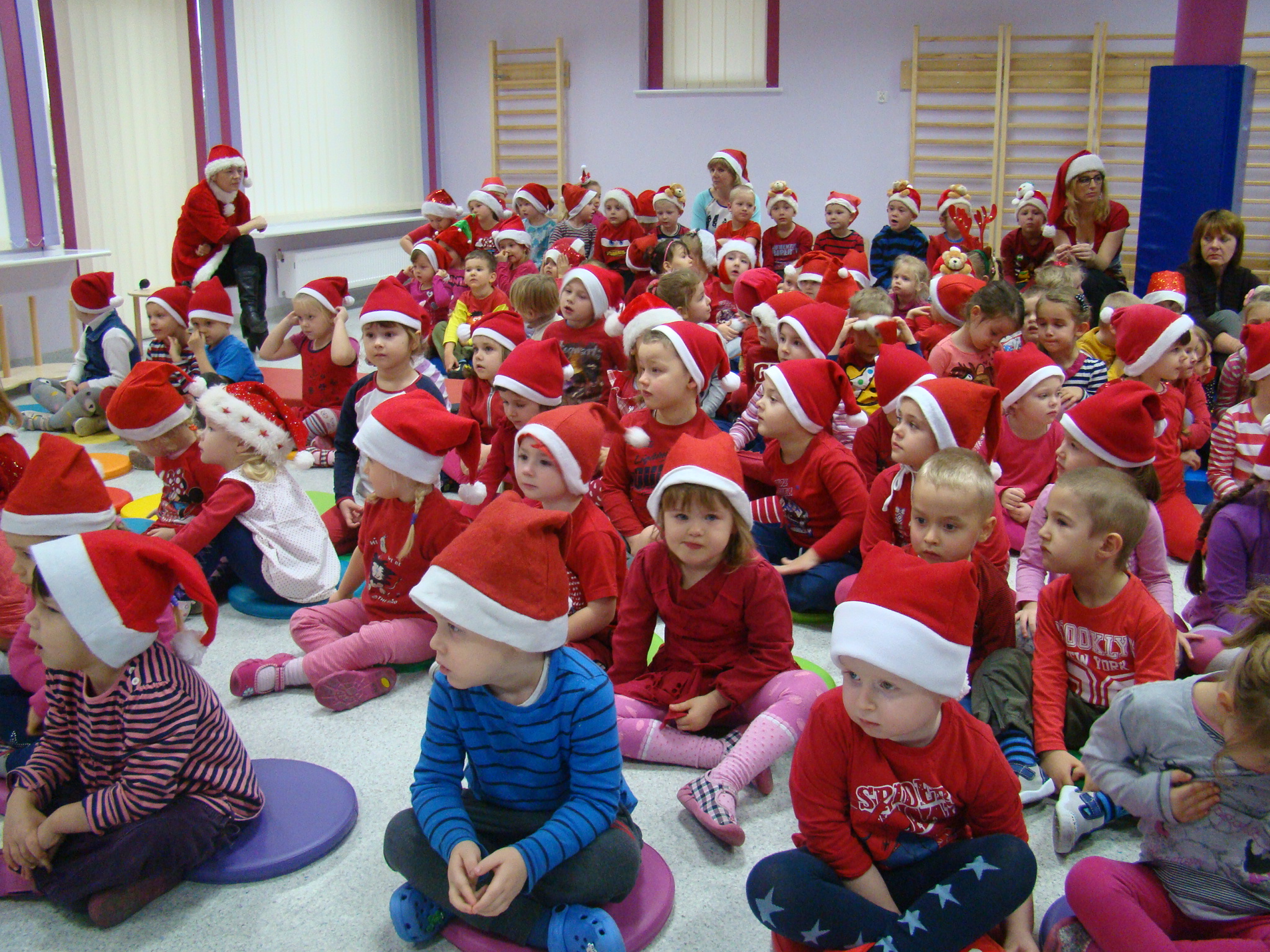 5 grudnia od samego rana w przedszkolu panowała wyjątkowa atmosfera. Przychodzące dzieci witał Mikołaj wyśpiewujący świąteczne piosenki. Na każdej Sali zabłysnęły światełka na przepięknie ubranych choinkowych drzewkach. A to był dopiero początek atrakcji jakie w tym dniu czekały na dzieci.