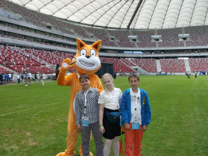 Naszą szkołę reprezentowało pięcioro uczniów - Adam Adamik, Dominik Grzywacz, Tatiana Januszkiewicz, Artur Myszko i Amelia Żukowicz. Na płycie Stadionu Narodowego nasi uczniowie zaprezentowali projekty, które powstały w trakcie trwania programu. Oglądając projekty innych szkół można stwierdzić, że prace naszych uczniów są na wysokim poziomie nawet wśród prac gimnazjalistów.