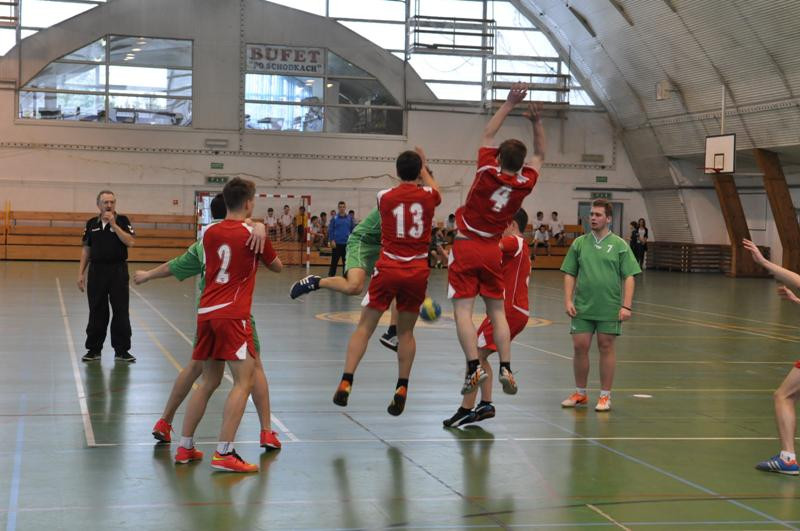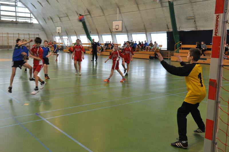 Tego samego dnia rozegrano Gimnazjadę Powiatową  w piłce ręcznej chłopców. Tutaj także najlepsze okazały się zespoły z  gminy Sianów. W finale spotkali się Gimnazjaliści z Dąbrowy i Sianowa. Lepsi okazali się Ci pierwsi wygrywając 11:6. Należy wspomnieć, że Gimnazjaliści z Dąbrowy zostali Mistrzami Powiatu drugi rok z rzędu i będą nasz powiat reprezentować w najbliższy piątek na zawodach regionalnych w Świdwinie. Do zmagań przystąpiło pięć  Gimnazjów. Dąbrowa, Sianów, Mielno, Mścice i Polanów. Drużyny podzielono na dwie grupy, jedną dwudrużynową i drugą trzydrużynową, z rodzieleniem mistrza i vicemistrza z poprzedniego roku (Dąbrowa, Polanów). Do grupy A trafiło G. Mścice, Dąbrowa i Mielno. Do gr. „B” G. Sianów i G. Polanów.