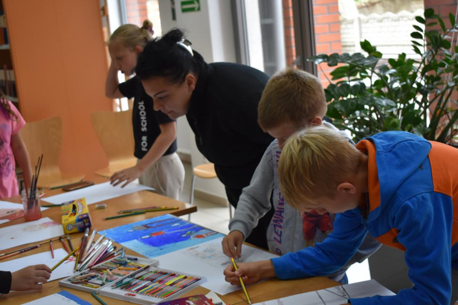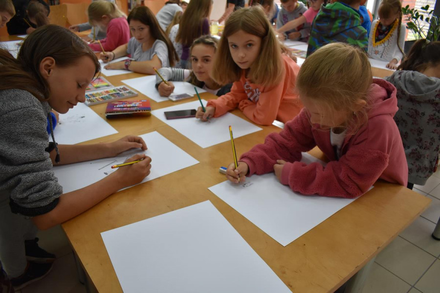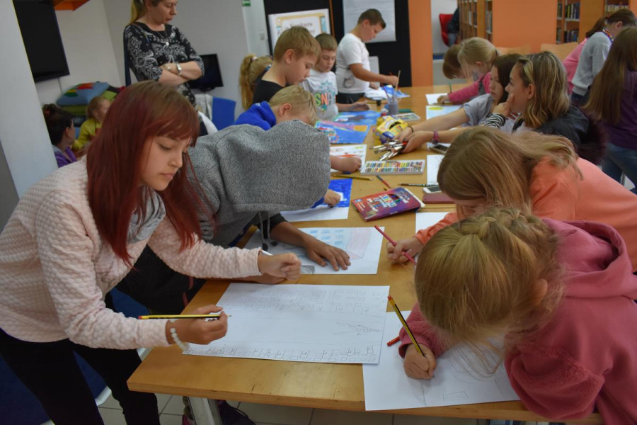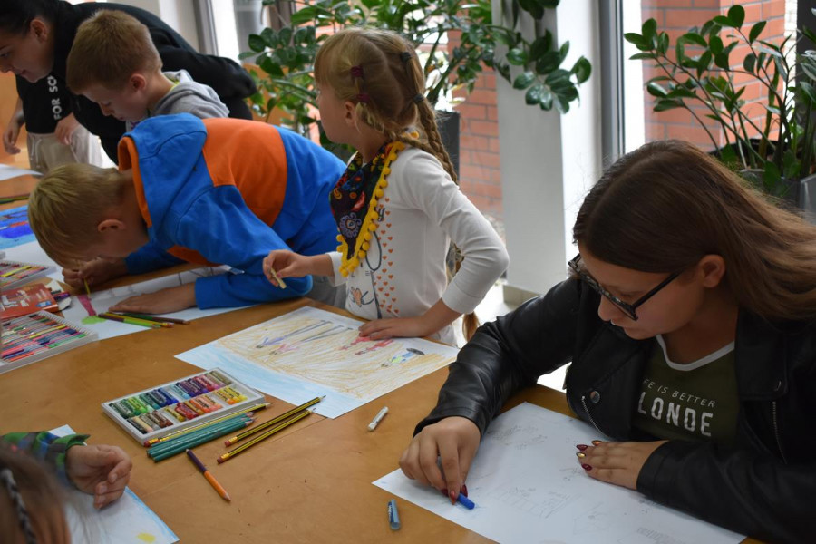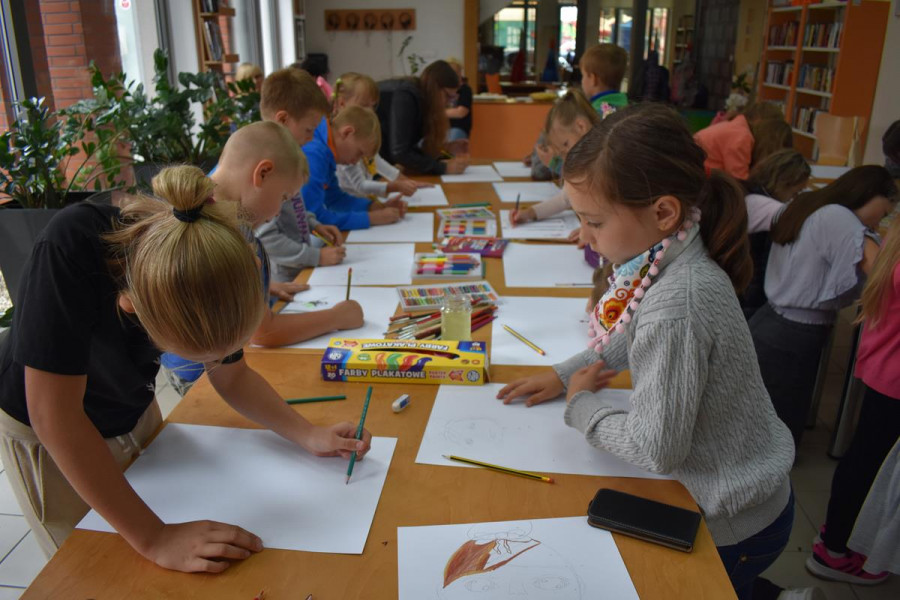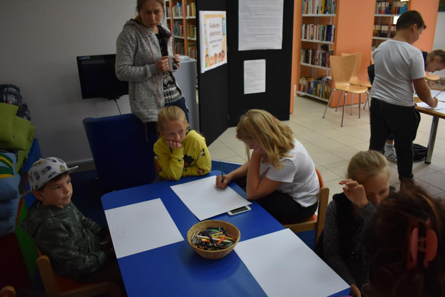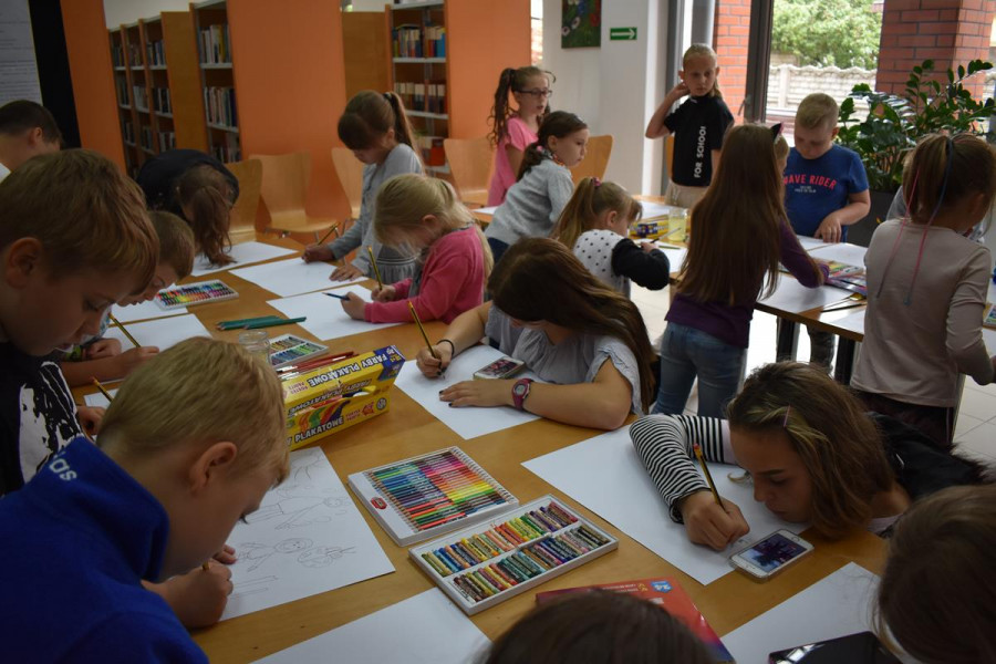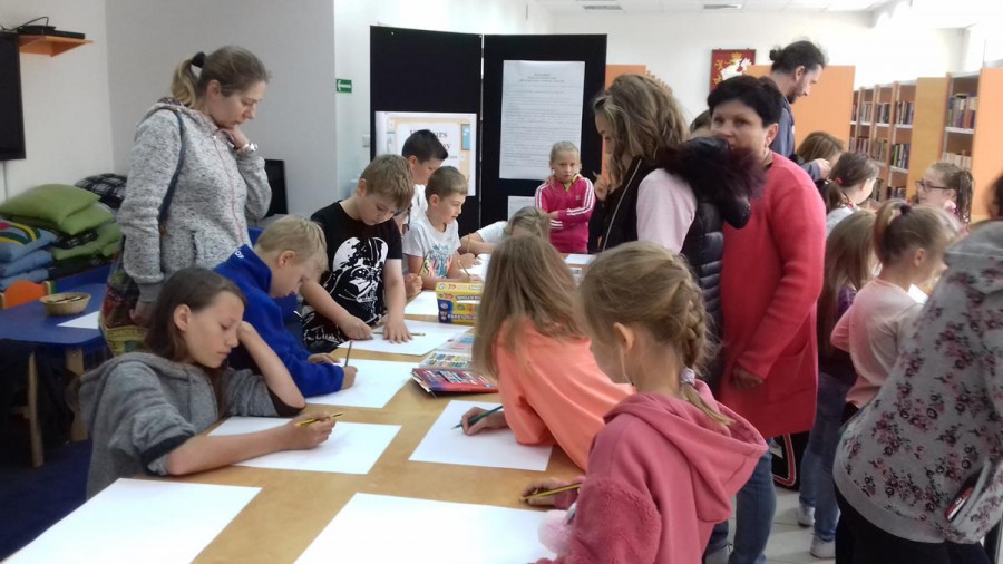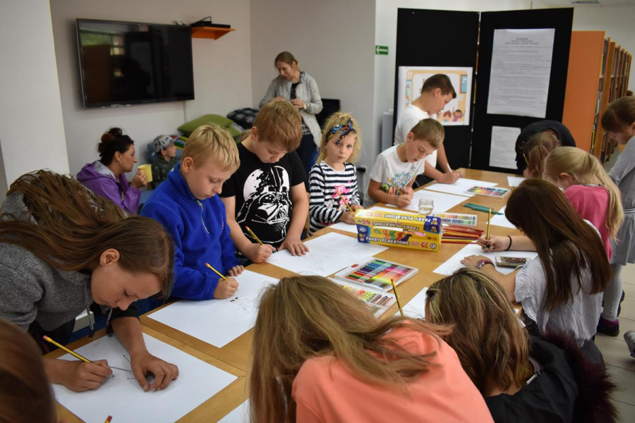 „Moje spotkanie z TEATREM ULICZNYM” to konkurs plastyczny, który już na stałe wpisał się w program FILM FOLK FESTIWAL W SIANOWIE. Jego popularność wśród dzieci i młodzieży wzrasta z każdą kolejną edycją. Z przyjemnością obserwujemy, jak bardzo angażują się nasi najmłodsi goście w przygotowanie prac konkursowych. Są one efektem dużej wyobraźni, talentu i pracowitości. Zasada konkursu jest taka, że najpierw dzieciaki oglądają spektakl teatralny na ulicach Sianowa, a potem w bibliotece malują swoje wrażenia. Do tegorocznej edycji konkursu zgłosiło się ponad 30 uczestników. Laureaci tegorocznego konkursu to: Michał Ryfun, Natalia Leśnicka, Oliwia Mural, Kornelia Lubińska, Kornelia Pożywio, Ola Andrzejczyk. Prace można oglądać w bibliotece - zapraszamy.