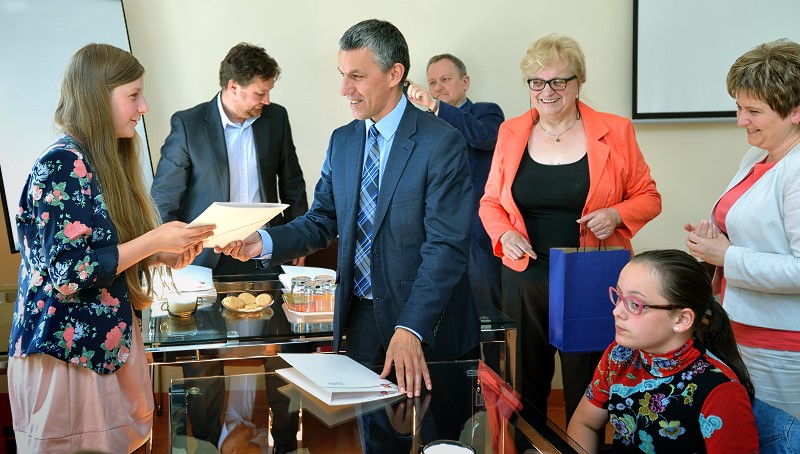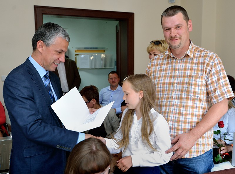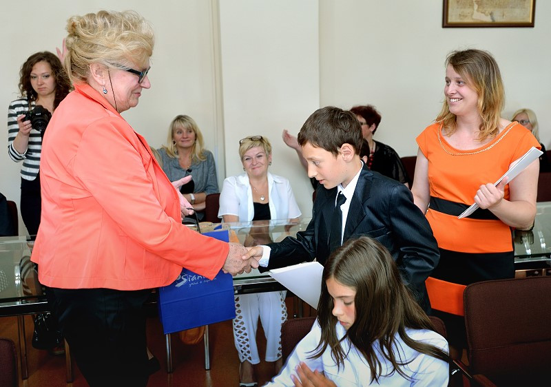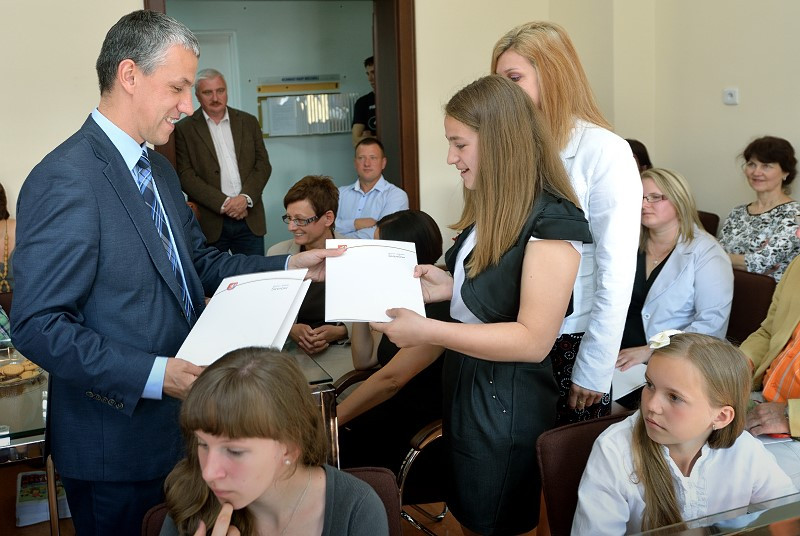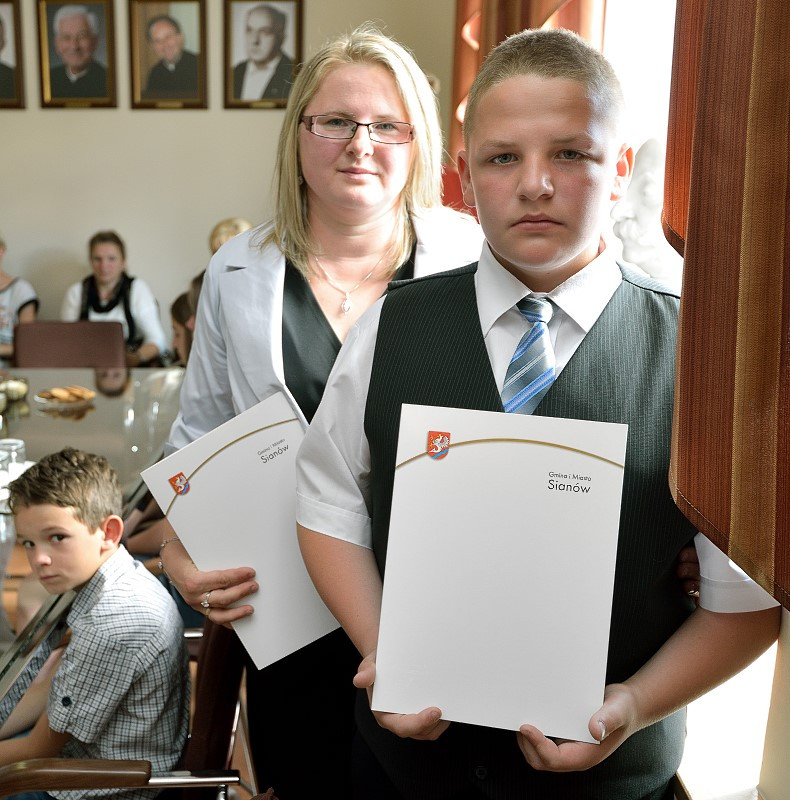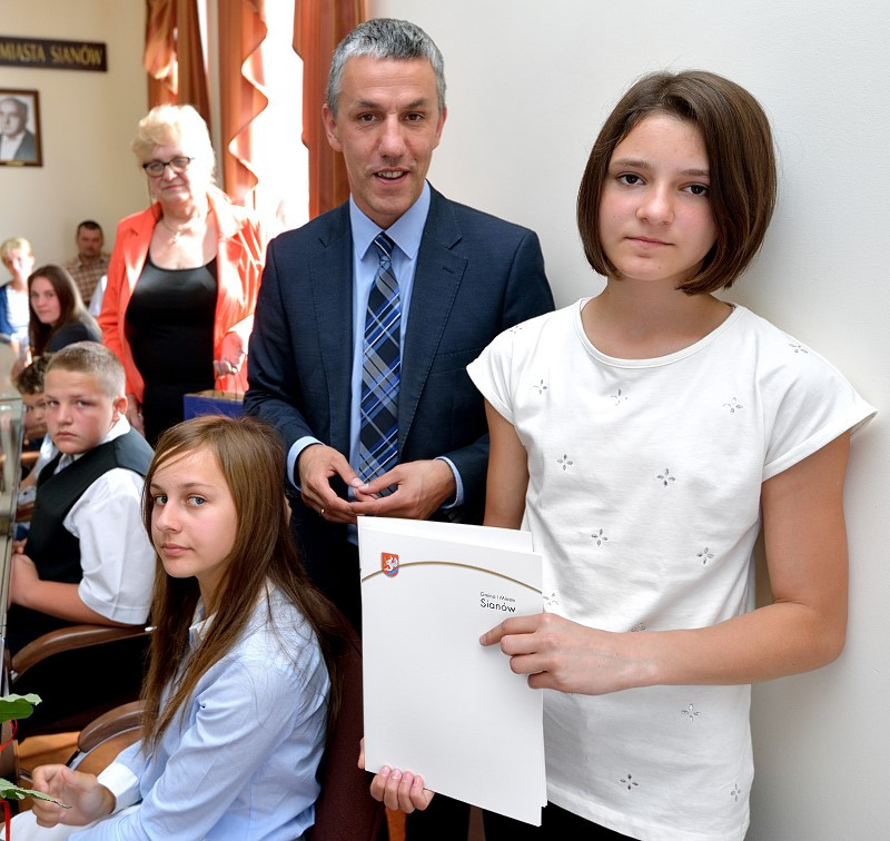 Spotkanie Burmistrza z najlepszymi absolwentami i najlepszymi uczniami ze szkół w gminie Sianów. W dniu 25 czerwca 2014 r. w siedzibie Urzędu Gminy i Miasta w Sianowie Burmistrz Gminy i Miasta Sianów Maciej Berlicki wraz z Zastępcą Marcinem Posmykiem oraz z Wiceprzewodniczącą Rady Miejskiej Ireną Banaśkiewicz i Dyrektorem ZAOO Heleną Zochniak, spotkali się z najlepszymi absolwentami i z najlepszymi uczniami szkół w roku szkolnym 2013/2014. Na spotkaniu obecni byli również zaproszeni rodzice uczniów, ich wychowawcy oraz dyrektorzy placówek oświatowych. Z rąk Pana Burmistrza i Pani Przewodniczącej uczniowie i ich rodzice otrzymali dyplomy gratulacyjne. Obecni na spotkaniu uczniowie otrzymali specjalne nagrody Burmistrza Miasta i Gminy Sianów.