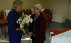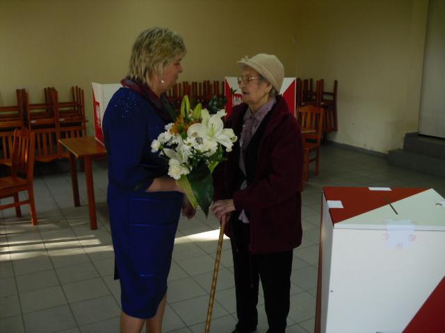 Członkowie Obwodowej Komisji Wyborczej nr 10 w Wierciszewie bardzo serdecznie przyjęli najstarszą mieszkankę Wierciszewa w wyborach Prezydenta Rzeczypospolitej Polskiej. Pani Stanisława Sawicka zawsze stara się brać udział w glosowaniach pomimo, że niedługo skończy 103 lata. Członkowie Komisji Wyborczej wręczyli pani Sawickiej bukiet kwiatów wraz z życzeniami zdrowia i podziękowaniami za czynny udział w głosowaniu.