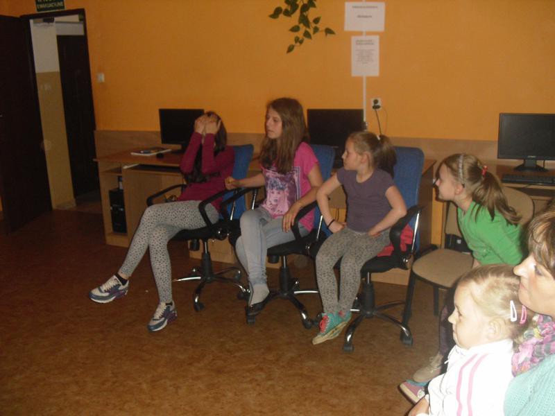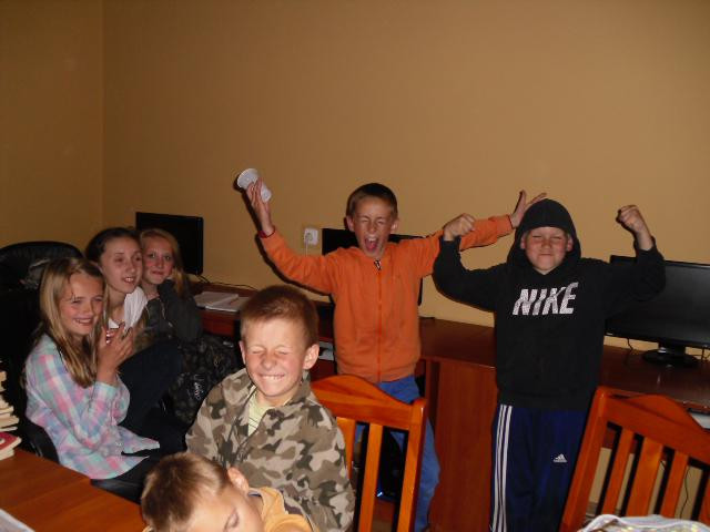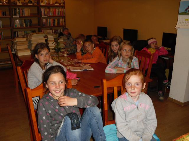 W Filii Bibliotecznej w Wierciszewie. Noc rozpoczęła się na boisku sportowym, gdzie odbyły się gry i zabawy, kalambury, malowanie kredą potwora oraz pieczona kiełbaska z grilla. Następnie w świetlicy rozegrany został turniej w ping- ponga oraz zabawa, kartki z kalendarza”, każda grupa losowała karty z datami na których trzeba było wypisać święto lub rocznicę. Na zakończenie wszyscy obejrzeli film pt. ,,Frankenweenie”- była to zabawna i podnosząca na duchu opowieść o potędze przyjaźni.