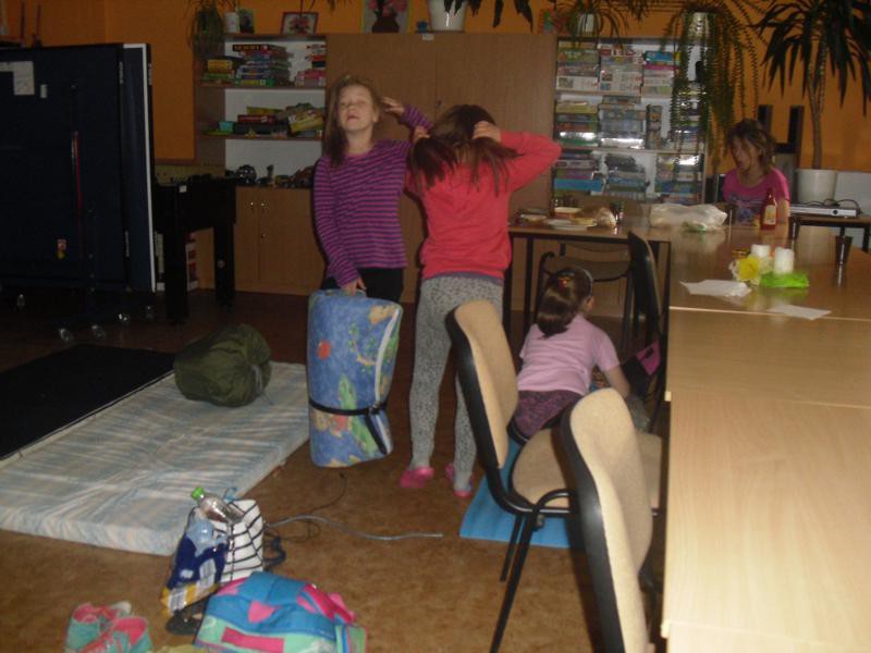 W Filii bibliotecznej w Siecieminie "noc" rozpoczęła się o godzinie 18.00 zabawami integracyjnymi: Okręt, Sałatka owocowa, Wycieczka do zoo itp., następnie były zabawy drużynowe: kalambury, odgadywanie nazw zwierząt i śpiewanie głosami zwierząt na melodię "Panie Janie". Na zakończenie części zabawowej dzieci grały w Pomidora i Pytanie, czy wyzwanie. Po pełnych emocji zabawach udały się na ognisko, gdzie było pieczenie kiełbasek i dalsza zabawa na świeżym powietrzu. Na ognisko zaproszeni byli także rodzice, aby wspólnie ze swoimi pociechami pobawić się i miło spędzić czas. Około 22.00 zmęczone, ale zadowolone dzieci porozchodziły się do swoich domów. Natomiast w Filii Bibliotecznej w Sierakowie na dzieci czekała zabawa w poszukiwanie skarbu czyli literackie podchody. Drużyny odnajdywały zmienione tytuły książek, które następnie trzeba było poprawnie ułożyć. Wszyscy uczestnicy nocki wykonali zadanie poprawnie. Po kolacji, którą wykonaliśmy wspólnie obejrzeliśmy film. Po projekcji filmu, kto miał siły surfował po Internecie lub bawił się w różne gry i zabawy. Najbardziej wytrwali udali się na spoczynek około 5.00 nad ranem, więc na sen nie mieli zbyt wiele czasu.