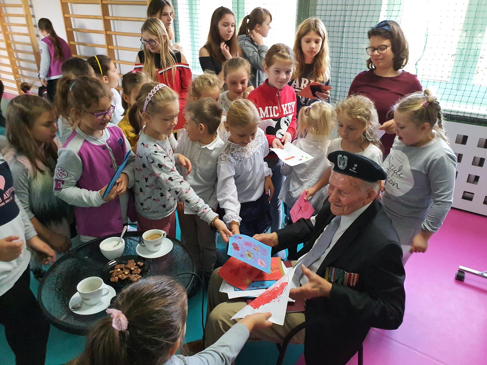 Na spotkanie z uczniami podstawówek zaproszony został Pan Aleksander Kaczorowski, Powstaniec Warszawski, Honorowy Mieszkaniec Gminy i Miasta Sianów. Pan Aleksander chętnie odpowiadał na pytania młodzieży, która była bardzo ciekawa wspomnień i przeżyć mieszkającego w Sianowie Bohatera. Pan Kaczorowski brał udział w powstaniu jako 17-latek. W trakcie dwumiesięcznych walk, cały czas był na pierwszej linii ognia, a mimo to nie doznał większych ran.