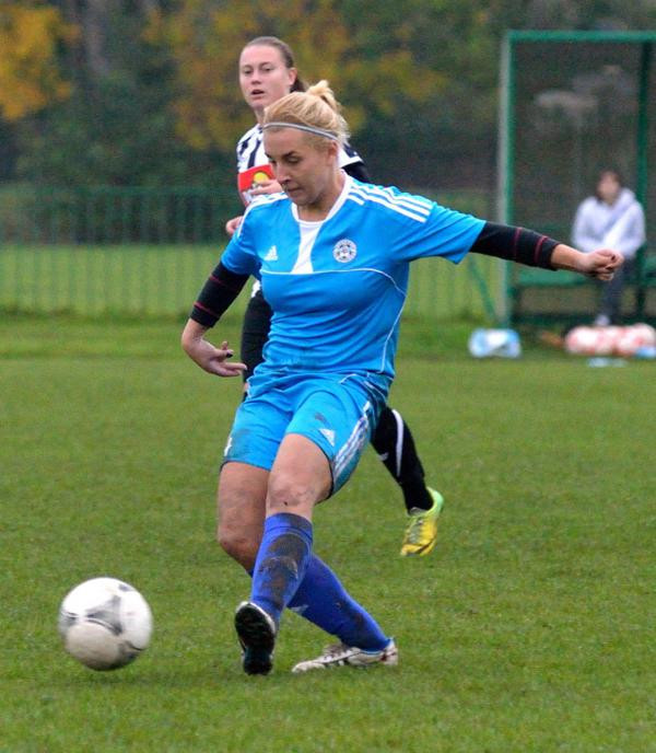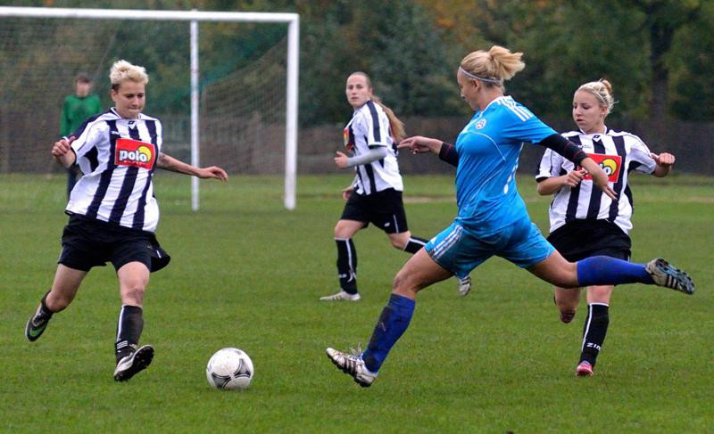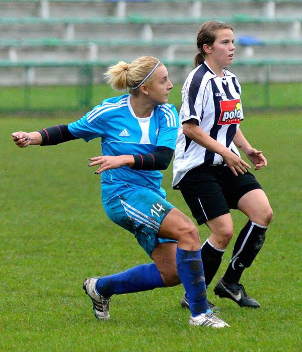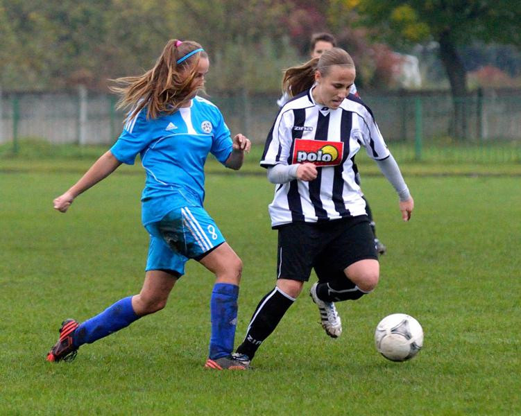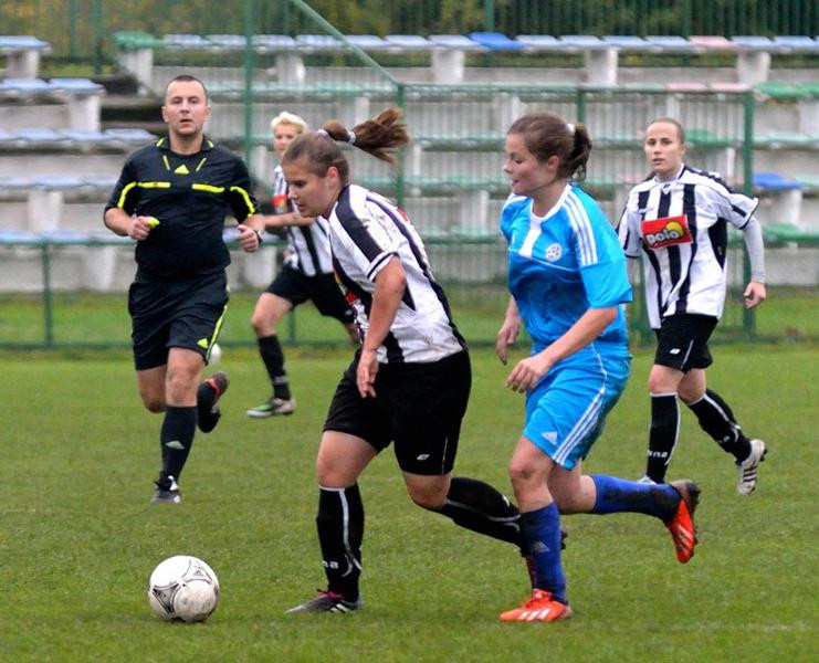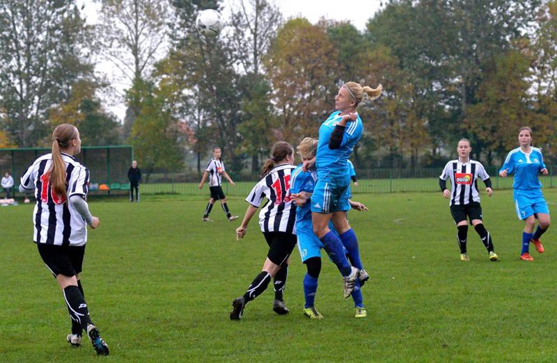Piłkarki sianowskiej Victorii S.P. 2 Sianów tym razem ciężko musiały się napracować na wygraną z UKS Górnicza Konin. Koninianki to beniaminek rozgrywek II ligi kobiet ale zarazem zaplecze Medyka Konin , obecnie najlepszego klubu kobiet w Polsce. Wygrana sianowiankom nie przyszła łatwo. Pierwsza połowa należała do piłkarek Victorii S.P.2 a w drugiej lepsze były koninianki. Na szczęście w bramce Victorii S.P. 2 wspaniale broniła Małgorzata Chwastek i to ona w dużej mierze przyczyniła się do wygranej sianowskich piłkarek. Już w 8 minucie pierwszej połowy po nieudanej pułapce na spalonego sianowianki mogły przegrywać ale w ostatniej chwili piłkę zmierzającą do bramki wybiła Karolina Struszczyk. W 11 minucie po pięknym strzale Malwiny Grzelak  z 30 metrów cudem broni konińska bramkarka. Jednak minutę później bo w 12 minucie już jest bez szans po kapitalnym uderzeniu Malwiny Grzelak z 17 metrów. W 21 minucie sianowianki wychodzą na  prowadzenie 2:0 po karnym wykonanym przez Izabelę Pawłowską za rękę jednej z piłkarek Konina. Kiedy wydawało się, że sianowianki pójdą za ciosem niespodziewanie w 22 minucie po źle zastawionej pułapce ofsajdowej tracą bramkę a szczęśliwą strzelczynią okazała się Sylwia Paczyńska. I tylko 2:1. Nie załamane bramką sianowianki nadal atakują i w 23 minucie Malwina Grzelak trafia w słupek. W 27 minucie po rajdzie Grzelak winno być 3:1 ale z bliska do konińskiej bramki nie trafia Paulina Trzeciak. W 30 i 38 minucie groźne strzały koninianek ale i też bardzo pewne interwencje Małgosi Chwastek.  W 51 minucie dobrej sytuacji sam na sam z bramkarką nie wykorzystuje Malwina Grzelak. W 55 minucie dobra akcja koninianek ale pewną interwencją popisuje się sianowska stoperka Karolina Struszczyk. W 85 minucie kapitalna obrona Małgorzaty Chwastek. Jeszcze w doliczonym czasie doskonałą akcją popisuje się Malwina Grzelak ale niestety w sytuacji sam na sam z bramkarką  gości przenosi piłkę nad poprzeczkę. Po meczu trenerzy sianowskiej ekipy Jędrzej Bielecki i Krystian Mural odetchnęli z ulgą. Cieszyli się z wygranej ale nie byli zadowoleni ze skuteczności swoich zawodniczek. Pewnym wytłumaczeniem ich nieskuteczności były na pewno trudne warunki , zryte boisko po meczu juniorów oraz ciągle padający deszcz. Trenerzy dziękowali wszystkim dziewczynom za zwycięstwo ale tym razem wyróżnili za grę Małgorzatę Chwastek, Malwinę Grzelak, Karolinę Struszczyk. Następny mecz sianowianki zagrają 18 października 2014 r. o godz. 11.00 z Olimpem w Gościnie.