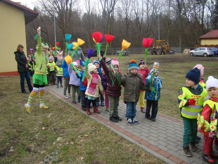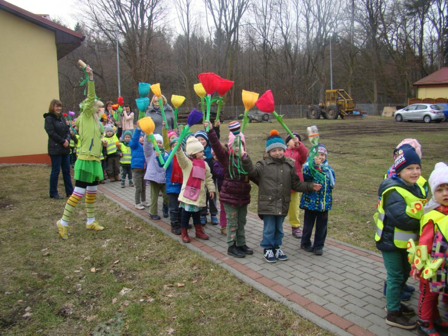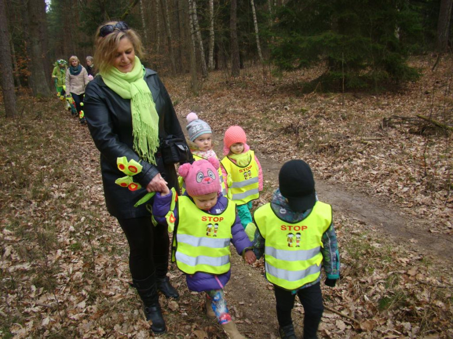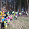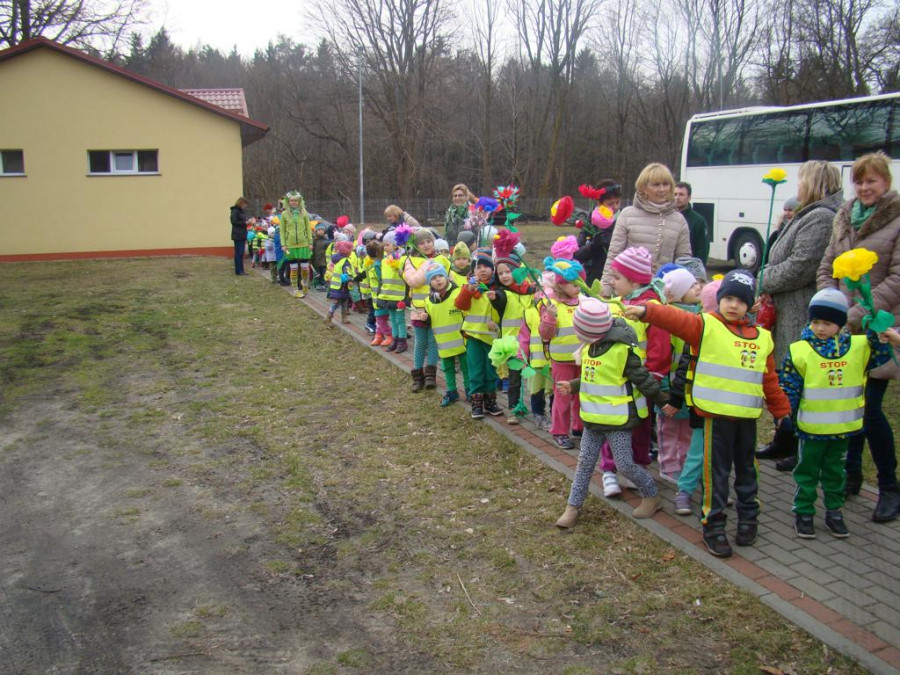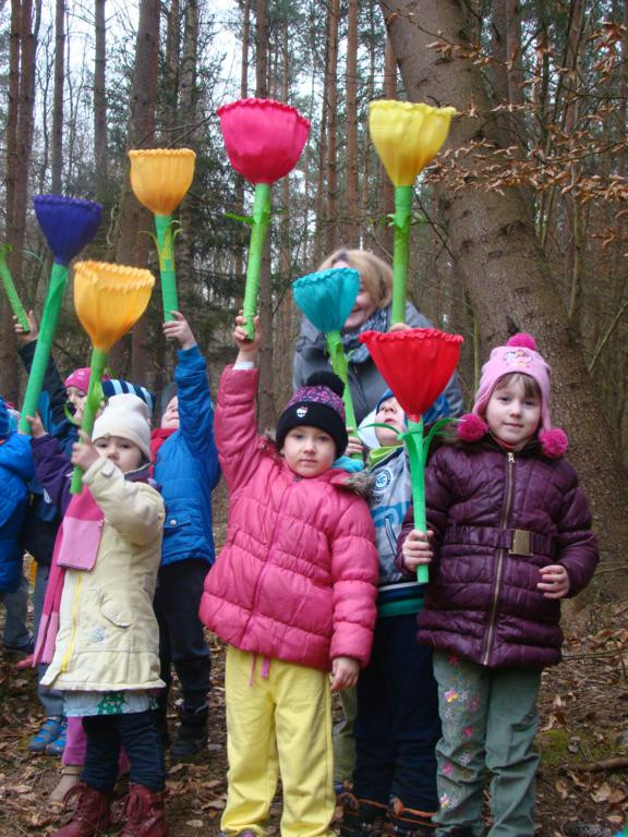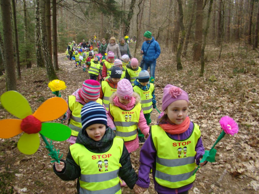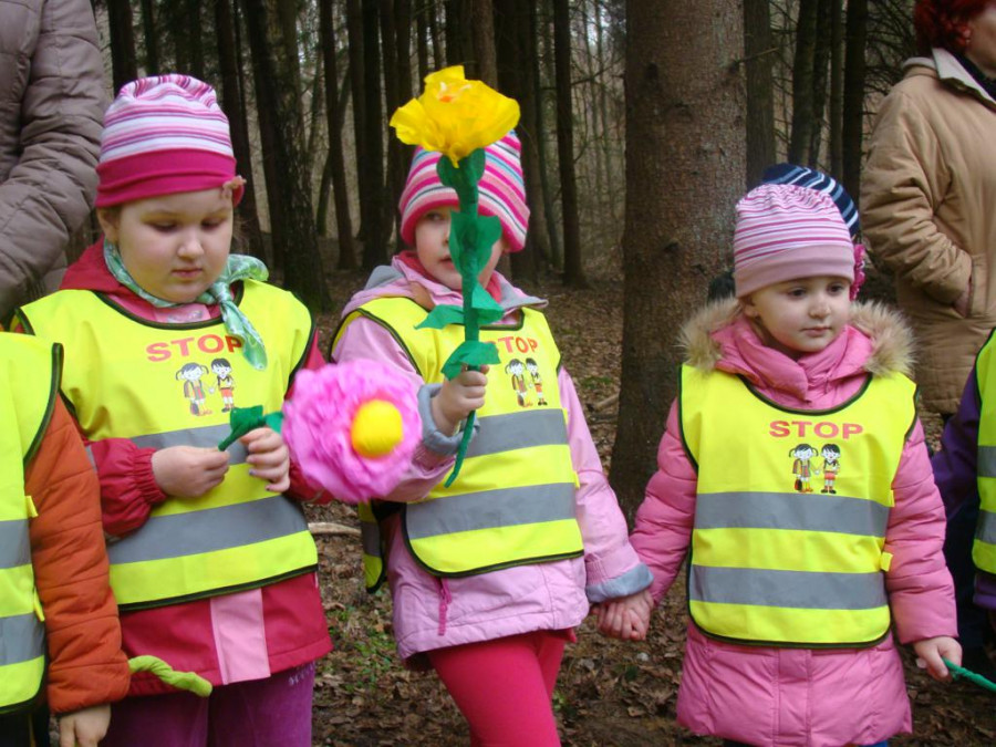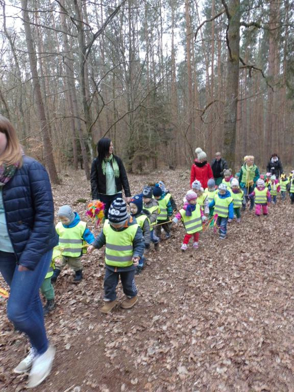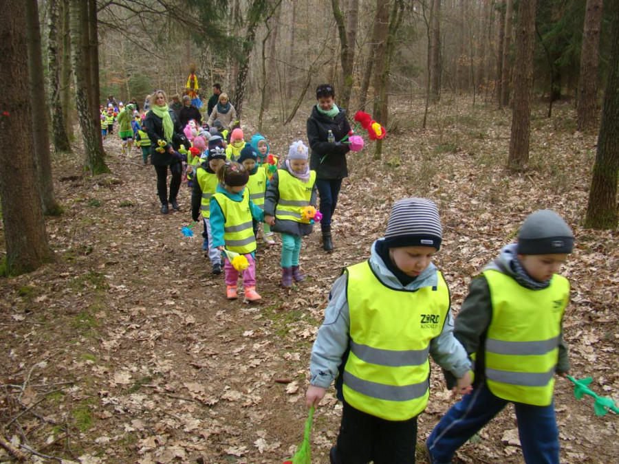 W barwnym korowodzie wspólnie z panią Dagny Staszewską oraz leśnikami przemaszerowaliśmy leśnymi drogami do zbiornika wodnego, gdzie przy głośnych okrzykach: ZIMO ZNIKAJ- WIOSNO WITAJ dokonaliśmy uroczystego pożegnania zimy i wrzuciliśmy słomiane kukły do wody. Każda grupa zaprezentowała również wiosenną piosenkę, aby wiosna na dobre zagościła w przyrodzie.