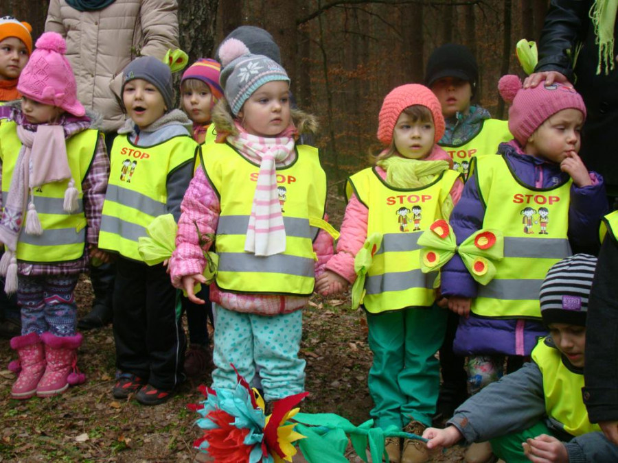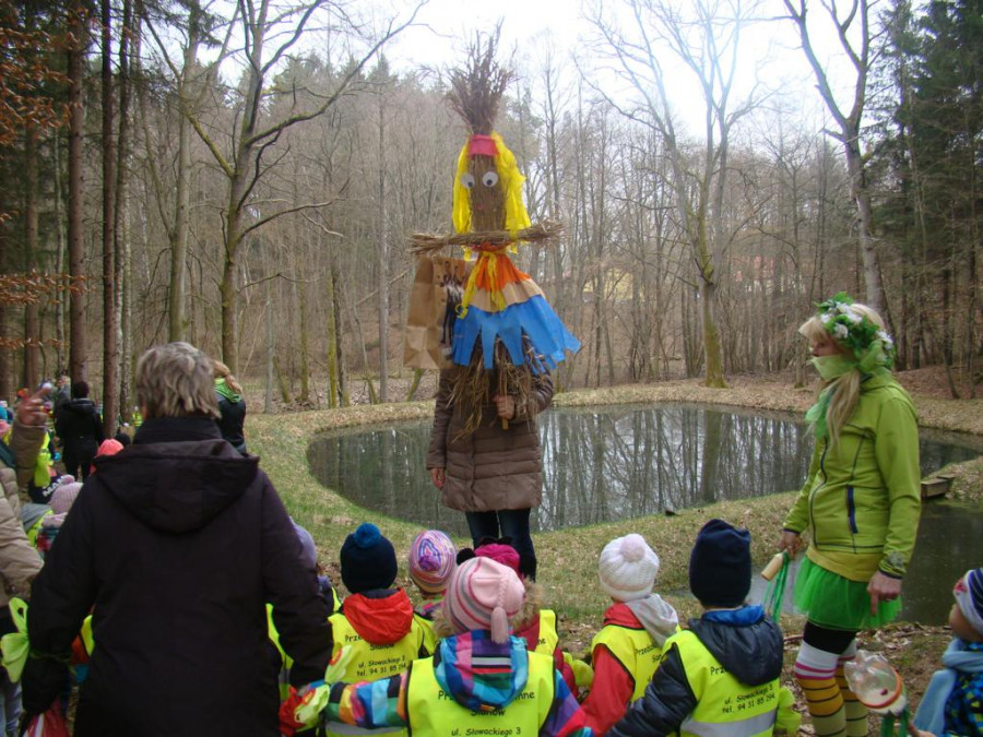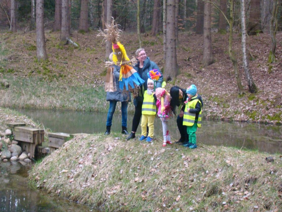 Na zakończenie wspomnę, że jako przedszkole promujące działania proekologiczne, otrzymaliśmy przyrzeczenie, że topione przez nas Marzanny zostaną wyciągnięte z wody, aby środowisko leśne nie zostało zanieczyszczone. Dziękujemy.