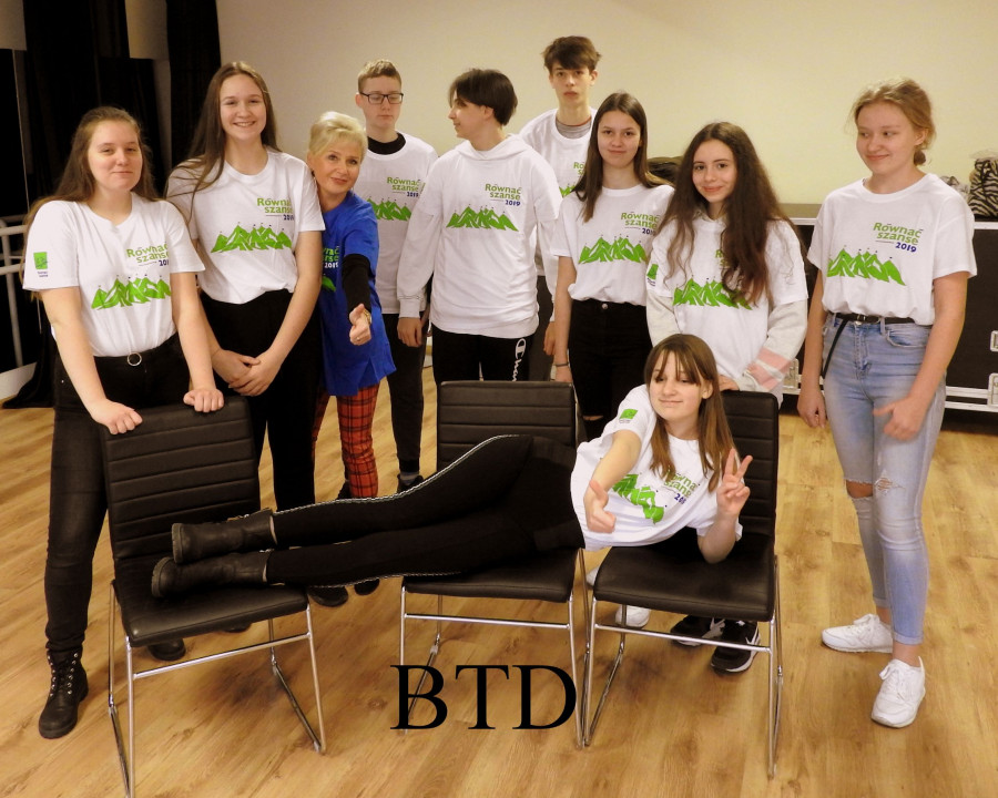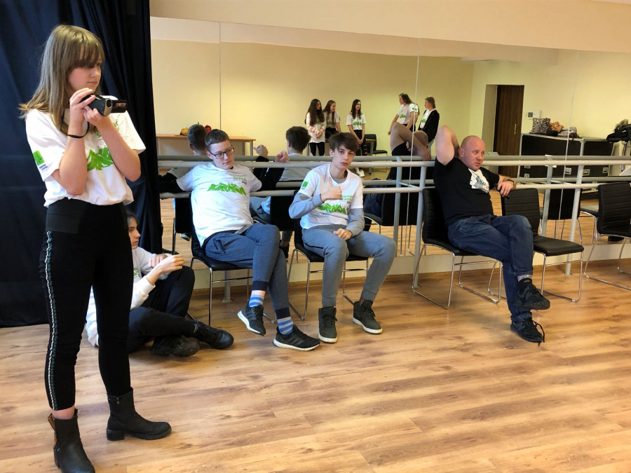 Zostaliśmy podzieleni na dwie duże grupy. Obie drużyny liczyły po 11 osób. W ramach realizacji zadań projektowych wybraliśmy jedną osobę z każdej grupy, która była odpowiedzialna za zorganizowanie transportu publicznego na miejsce realizacji etapów projektu. W ustalonych terminach jeździliśmy do Bałtyckiego Teatru Dramatycznego