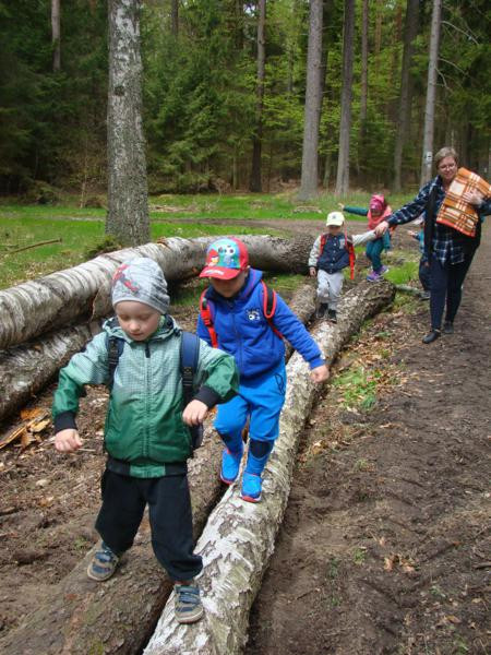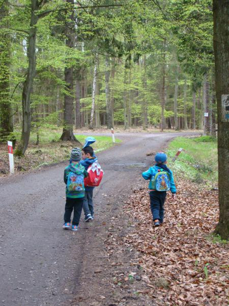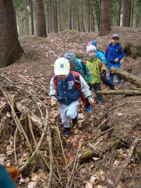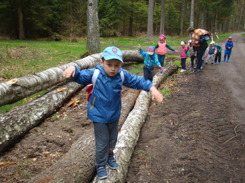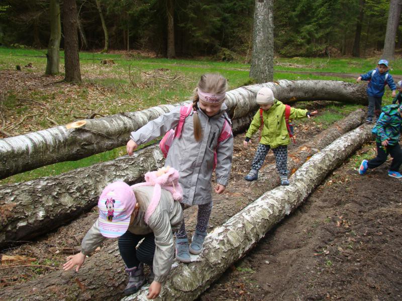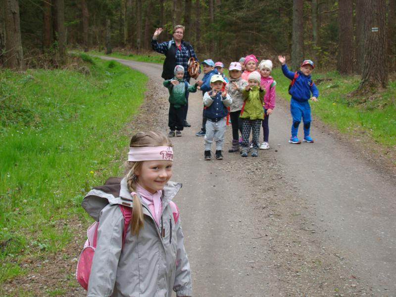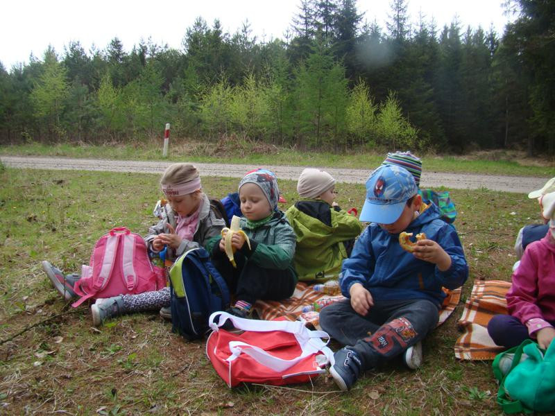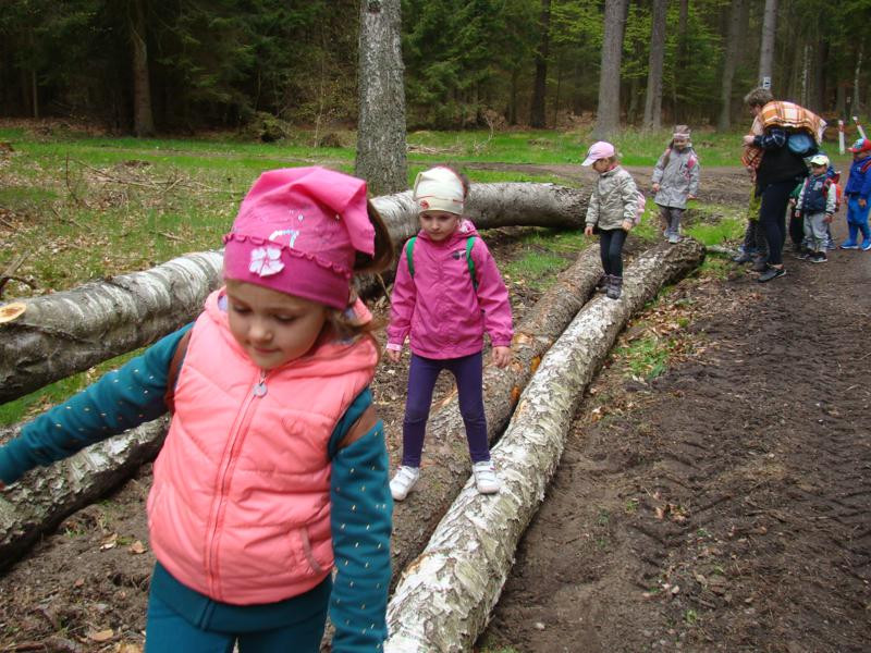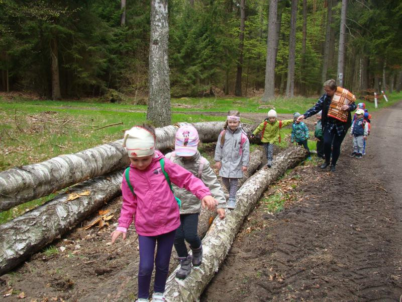 Dzieci z Koła Turystycznego „Wędrowniczek” wybrały się na rajd pieszy wiosennymi dróżkami. Zapakowały do plecaka cymesiki, zabrały z sobą wygodne buty oraz doskonały humor. Wiosenne las przywitał „Wędrowniczki” szumem wiatru i śpiewem ptaków. Mali wędrowcy wybrali niebieski szlak. Po drodze spotkali wiele przyrodniczych niespodzianek: pracowite mrówki w mrowisku, bezbronne drzewo powalone przez wiatr, wiosenne rośliny i zwierzęta. Dzieci wykonywały rajdowe zadania: przechodzenie po leśnej dłużycy, rzut szyszką do pnia, rozpoznawanie leśnych mieszańców, wsłuchiwanie się w bicie serca drzewa. „Wędrowniczki” bardzo zmęczone, ale przeszczęśliwe powróciły wiosennymi dróżkami do przedszkola.