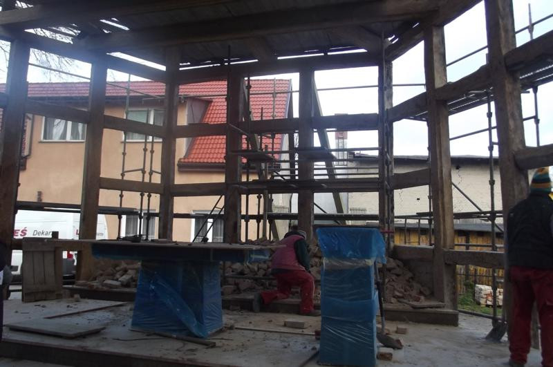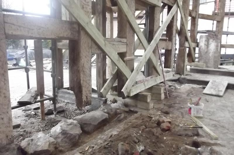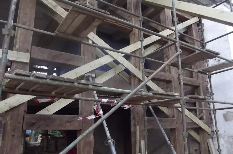 Tempo prac jest utrzymane, a planowane wcześniej prostowanie świątyni w dużej mierze już za nami. Wszystko odbyło się w spokoju przy całej koniecznej przemienności działań koniecznej wnikliwej obserwacji i nastawianiu uszu na trzaski i dźwięki zmęczonej wielowiekowej konstrukcji.Teraz po uporządkowaniu placu ze zdemontowanych łat i innych elementów metalowych, realizowane jest podnoszenie konstrukcji średnio o ok 20 cm. Następnie będą prowadzone prace rekonstrukcyjne fundamentów- wymagają one naprawy i wzmocnienia w zasadzie na całym obwodzie , szczególnie w części południowej trzeba dokonać pewnej przebudowy po prowizorycznejich wcześniejszej naprawie.
