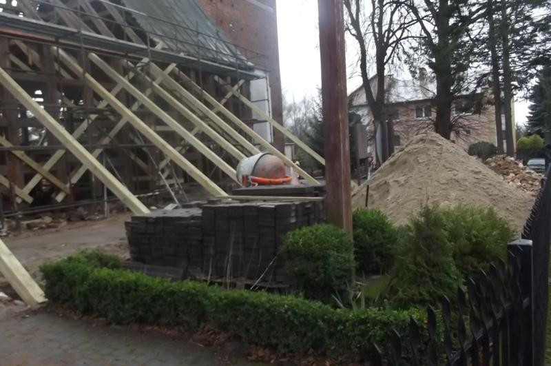 Dla wielu z nas sobota to wolny dzień, ale dla remontujących kościół w Sianowie to normalny dzień pracy. Słoneczna pogoda, mimo silnych porywów wiatru, sprzyja dobremu przebiegowi prac. Pracownicy firmy ZŁOMOSTAL z Koszalina odbierają z terenu przykościelnego blachę z dachu oraz rynny zdemontowane przez dekarzy.Uzyskane środki będą też wsparciem konta remontowego.