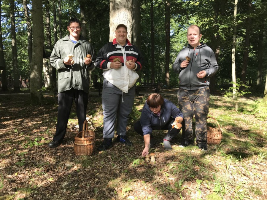 Uczestnicy „SZANSY” chętnie spędzają czas na świeżym powietrzu.  Wybrali się także do lasu na grzybobranie.. Przebywanie w lesie, który zachwyca ciszą, zapachem, niesamowitym blaskiem przebijającego przez korony drzew słońca  działa zbawiennie na nasze zdrowie. Zbiór chociaż nie był wielki, dał ogromną satysfakcję. Udało się zebrać zdrowe, piękne okazy. Pierwszego tegorocznego prawdziwka znalazła Pani Grażyna Gieparda. Mamy nadzieję, że tegoroczny sezon na grzyby będzie równie udany jak zeszłoroczny.