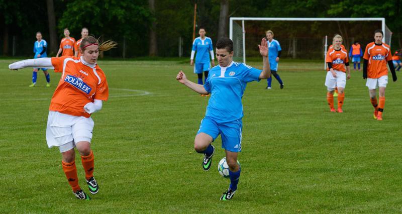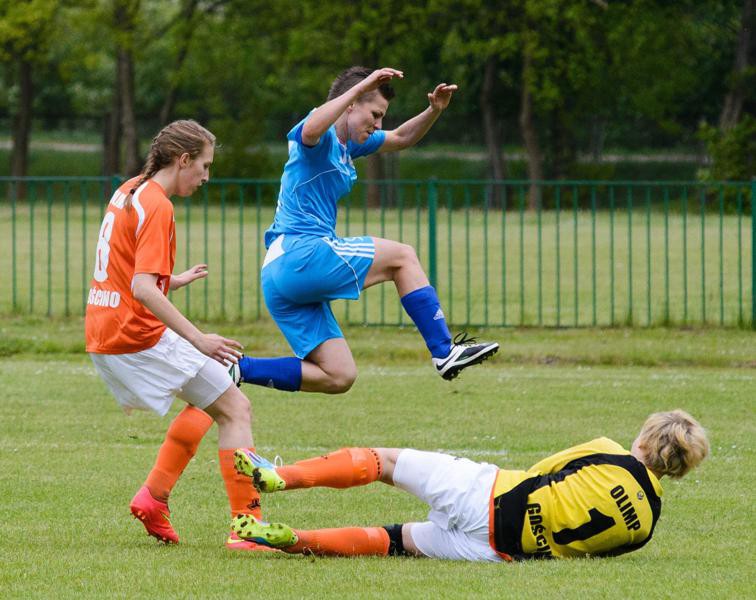 Piłkarki Victorii SP 2 rozegrały ostatnie spotkanie rundy wiosennej sezonu 2014/2015 na swoim stadionie  w Sianowie. Ich przeciwniczkami były piłkarki Olimpa Gościno.  Mecz zakończył się zdecydowanym zwycięstwem sianowianek 3:0 ale nie był to dla nich łatwy mecz. Wynik remisowy utrzymywał się  aż do 65 minuty kiedy to wreszcie niezawodna Malwina Grzelak po ładnym podaniu Klaudii Rogowicz strzeliła do bramki Olimpa. Wcześniej szczególnie w pierwszej połowie toczyła się zażarta walka ale bramki nie padały. Piłkarki Victorii SP 2 miały może przewagę ale nic z tego nie wynikało a na dodatek zespół z Gościna dobrze się bronił i groźnie kontratakował i był bliski strzelenia gola. W sianowskiej bramce jednak bardzo dobrze spisywała się Małgorzata Chwastek i dzięki jej postawie i niezłej grze linii defensywnej sianowianki nie straciły żadnej bramki. W 75 minucie po rzucie z rogu Karolina Struszczyk głową strzeliła drugą bramkę  i sianowianki prowadziły 2:0.  Po tej bramce dobrze dotychczas grające piłkarki z Gościna załamały się i pogodziły się z porażką. Efektem tego była trzecia bramka Victorii SP2 strzelona przez Joannę Świąder z 15 metrów w samo okienko bramki Olimpa.  W opinii trenerów Jędrzeja Bieleckiego i Krystiana Murala nie był to najlepszy mecz ich podopiecznych. Szczególnie w pierwszej połowie grały wolno , statycznie a  ich akcjom brakowało dynamiki oraz dobrego współdziałania wszystkich formacji. Małym usprawiedliwieniem może być jednak fakt  braku kilku ważnych zawodniczek: Pauliny Trzeciak, Pauliny Buszowieckiej, Laury Krupienko, Izabeli Pawłowskiej, Żanety Sieg a Klaudia Saganowska grała na swoje życzenie nie będąc w pełni zdrowa.  Mimo to dziewczynom należą się słowa uznania za walkę do końca.