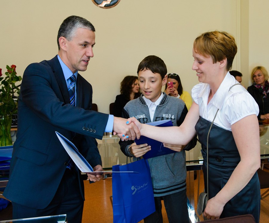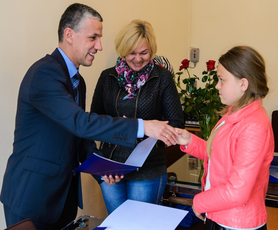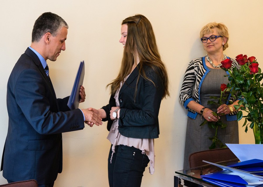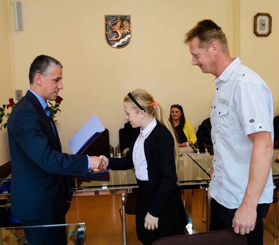W dniu 24 czerwca 2015 r. w siedzibie Urzędu Gminy i Miasta w Sianowie Burmistrz Gminy i Miasta Sianów Maciej Berlicki wraz z Zastępcą Burmistrza Marcinem Posmykiem i Dyrektorem Zespołu Administracyjnej Obsługi Oświaty w Sianowie Heleną Zochniak, spotkali się z najlepszymi w roku szkolnym 2014/2015 absolwentami i uczniami szkół gminnych. Na spotkaniu obecni byli również rodzice uczniów, ich wychowawcy oraz dyrektorzy placówek oświatowych. Z rąk Pana Burmistrza uczniowie i ich rodzice otrzymali dyplomy gratulacyjne. Dodatkowo wszyscy wyróżnieni otrzymali specjalne Nagrody Burmistrza w postaci tabletów, które mamy nadzieję, że będą wykorzystane przez uczniów w poszerzaniu swojej wiedzy. Oto nasi najlepsi tegoroczni absolwenci i najlepsi uczniowie szkół gminnych:
