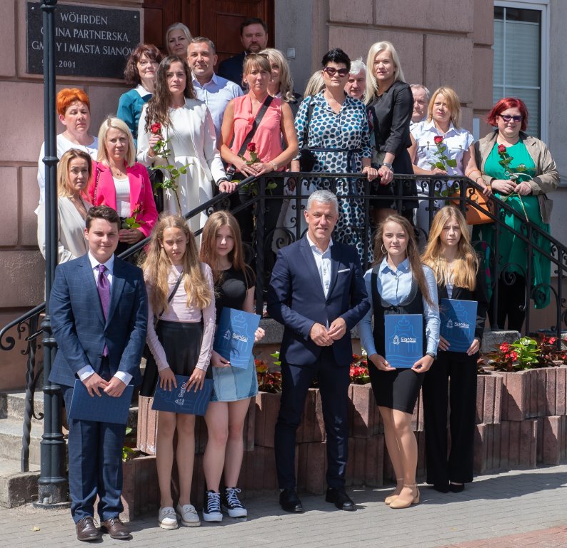 Pan Burmistrz złożył wszystkim gratulacje z okazji osiągnięcia najwyższych wyników nauczania w swojej szkole. Absolwenci otrzymali nagrody Burmistrza Gminy i Miasta Sianów na kwotę 600 złotych w postaci dofinansowania zakupu sprzętu elektronicznego, sportowego lub turystycznego w zależności od potrzeb dziecka.