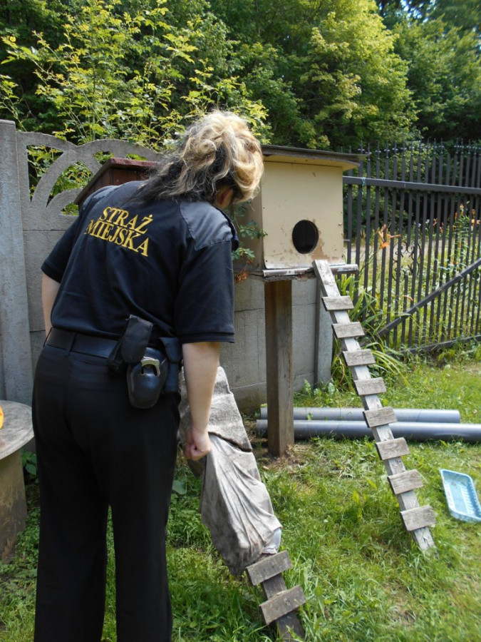 Straż Miejska w Sianowie zwraca wiele uwagi na zapewnienie właściwych warunków w jakich trzymane są zwierzęta domowe. Strażnicy natychmiast reagują na każde otrzymane zgłoszenie. Sami też podczas patrolu stwierdzają przypadki naruszenia przepisów ustawy o ochronie zwierząt. W dniu 22 lipca 2015 roku w Sianowie na terenie posesji zamieszkiwanej samotnie przez starszego mężczyznę strażnicy zauważyli trzy psy i kilka kotów. Warunki w jakich były trzymane zwierzęta nie zapewniały w pełni niezbędnej opieki. Właściciel piesków sam również przyznał iż jest mu bardzo ciężko, ma trudne warunki materialne i nie radzi sobie z taką gromadką zwierzaków. Ponieważ jest to szczególny przypadek - po uzgodnieniu z pracownikami Referatu Ochrony Środowiska UGiM w Sianowie zaproponowano mu, aby pozostawił sobie jednego psa, a pozostałe nieodpłatnie przekazał do schroniska. Właściciel piesków zgodził się zrzec praw własności do piesków. Wdrożono więc stosowne postępowanie, a na czas realizacji tych czynności przekazano właścicielowi karmę dla psów i kotów.
